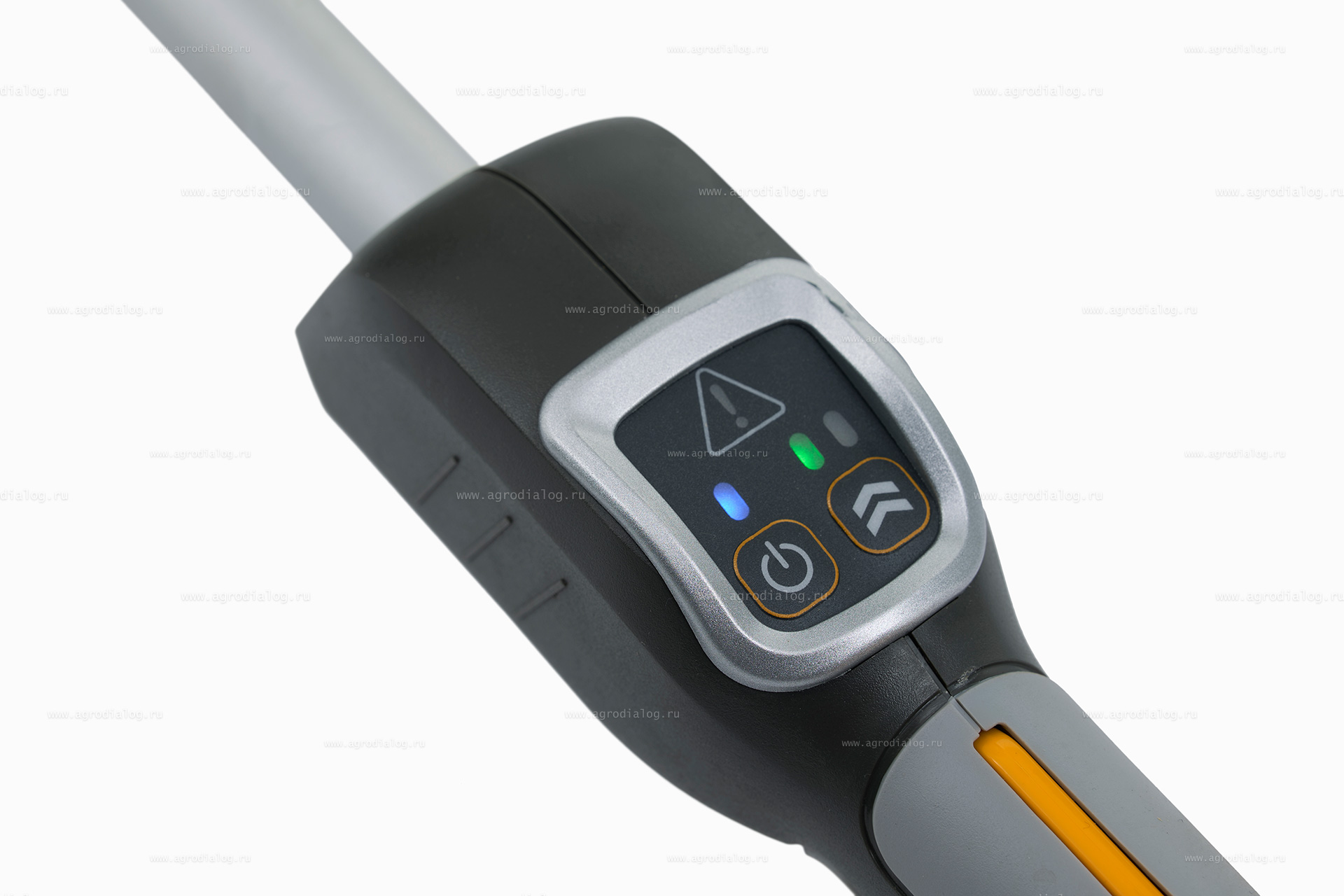 - Органы управления косой чрезвычайно просты в обращении. Это означает, что вы можете справиться с любой задачей комфортно и уверенно, и для этого вам потребуется всего одно нажатие кнопки. Две скорости работы для лучшего управления энергопотреблением и производительностью.