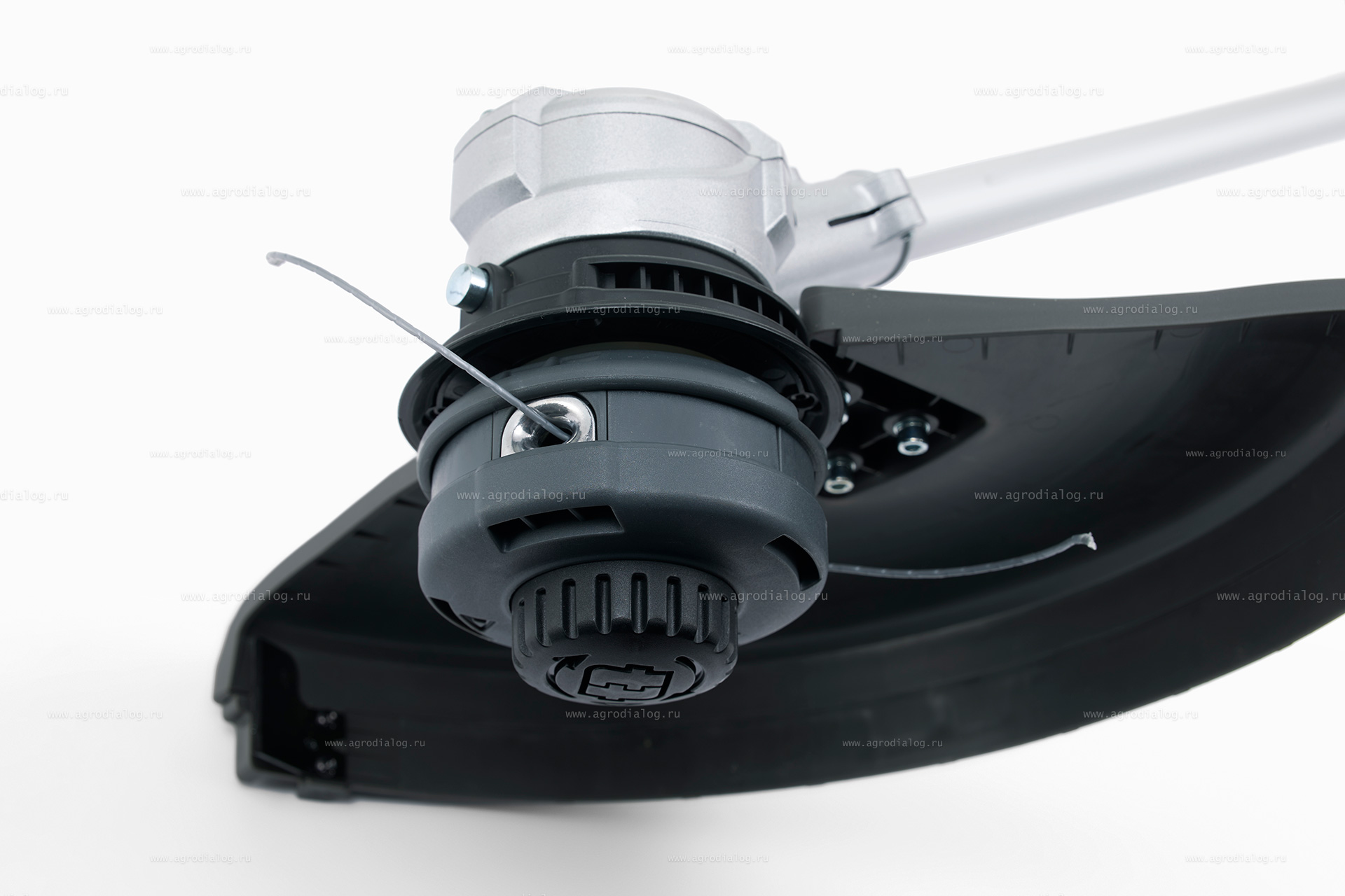 - Устройство оснащено косильной катушкой Tap`N`Go с механизмом автоматической размотки лески под воздействием ударной нагрузки. При ударе косильной катушкой по поверхности грунта производится размотка режущей лески.