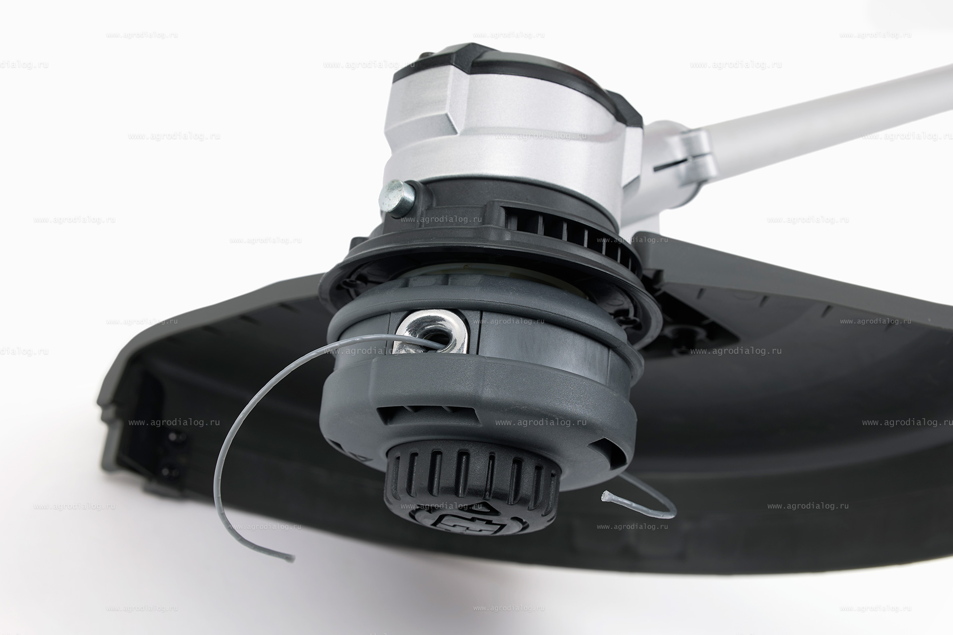 • Устройство оснащено косильной катушкой с механизмом автоматической размотки лески под воздействием ударной нагрузки. При ударе шпули по поверхности грунта производится размотка режущей лески.