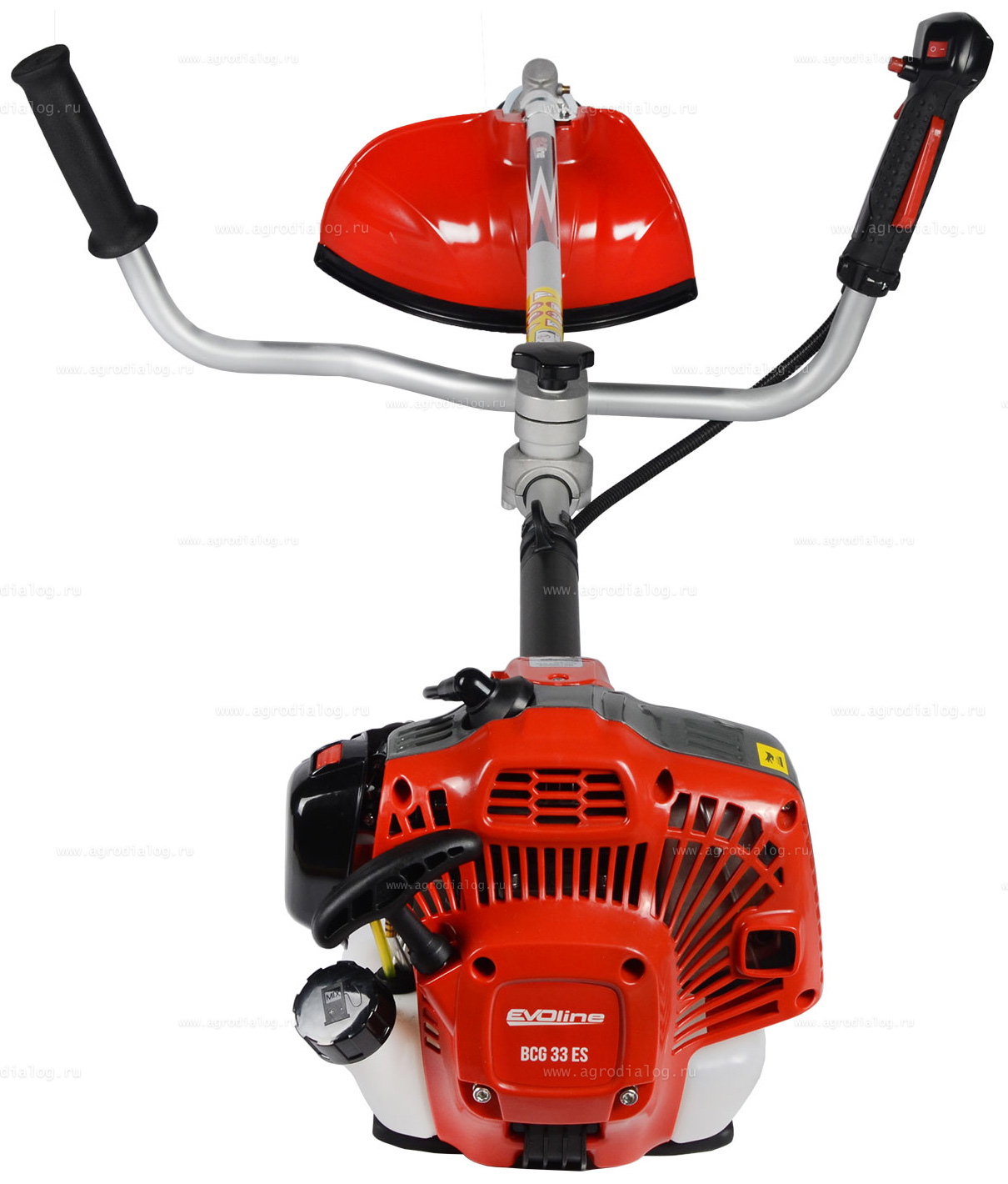 - Бензокоса EVOline BCG 33 ES оборудована ранцевой ременной оснасткой, которая оптимальным образом распределяет нагрузку между плечами, грудной клеткой и спиной. Широкие плечевые ремни снижают нагрузку на тело пользователя.