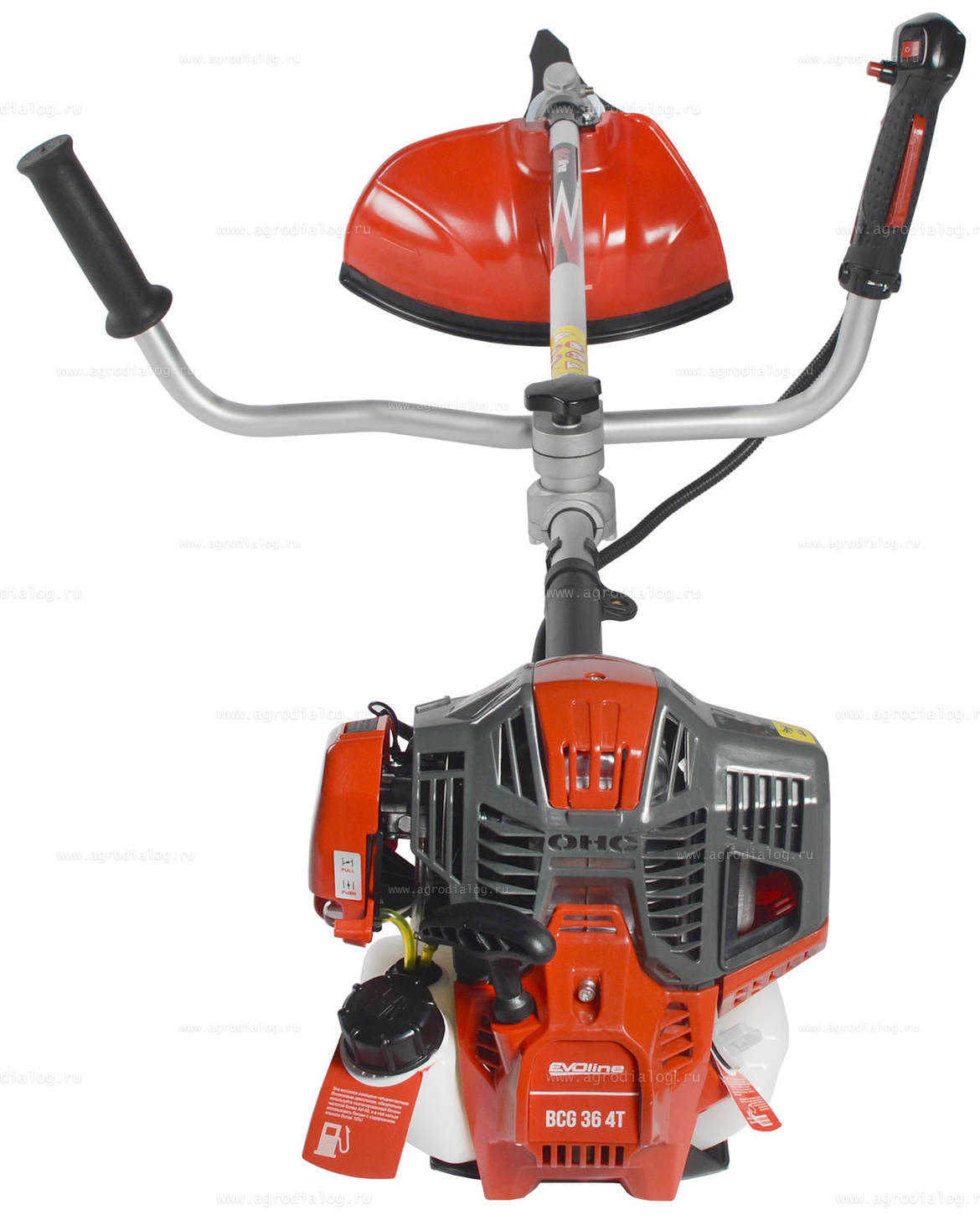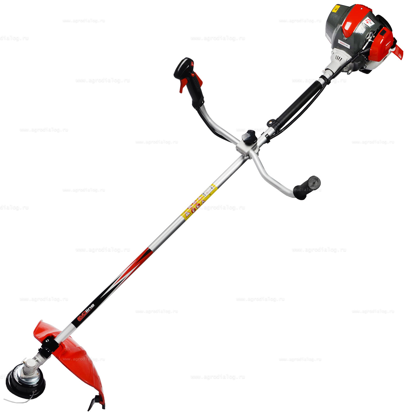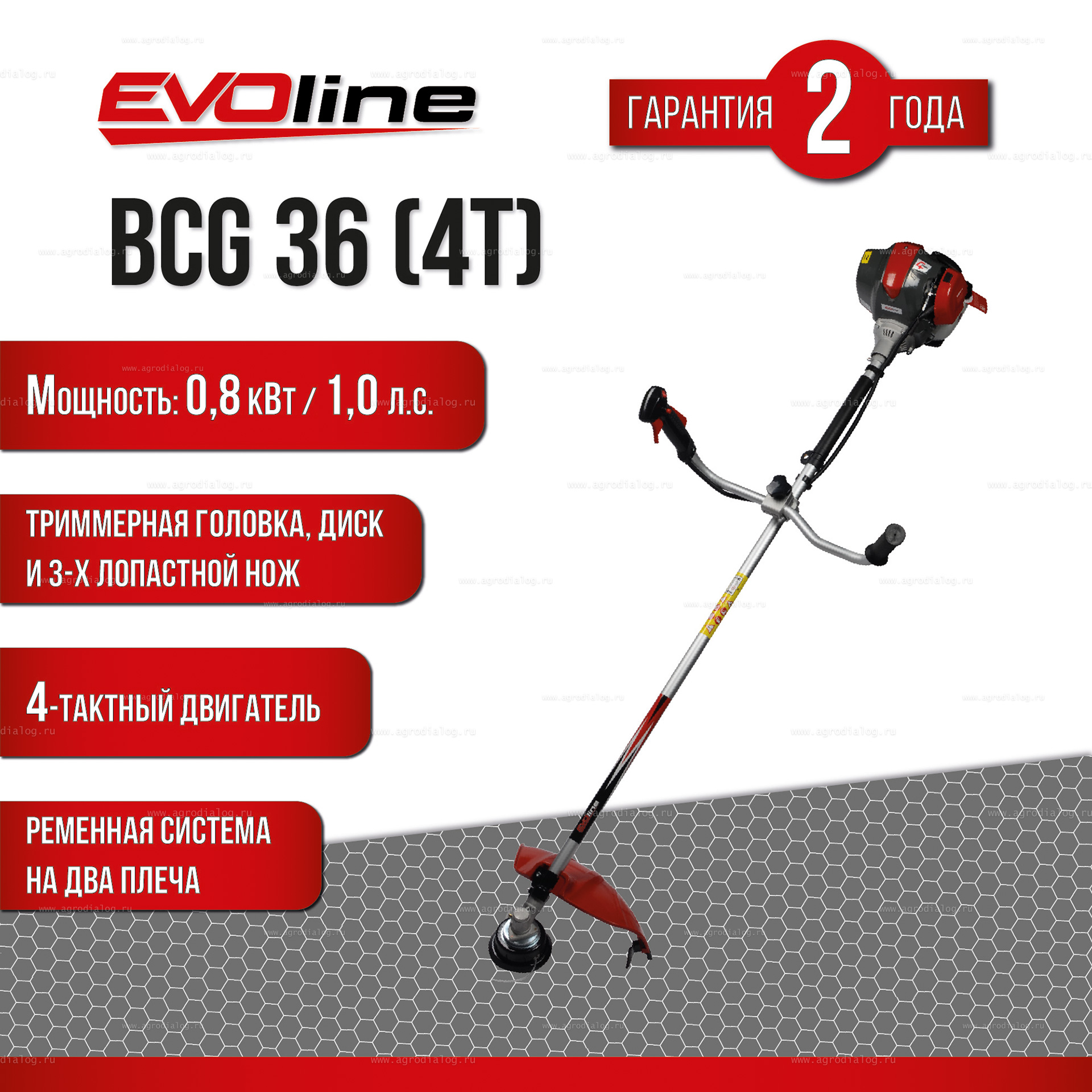 - Бензокоса EVOline BCG 36 4T оборудована ранцевой ременной оснасткой, которая оптимальным образом распределяет нагрузку между плечами, грудной клеткой и спиной. Широкие плечевые ремни снижают нагрузку на тело пользователя.