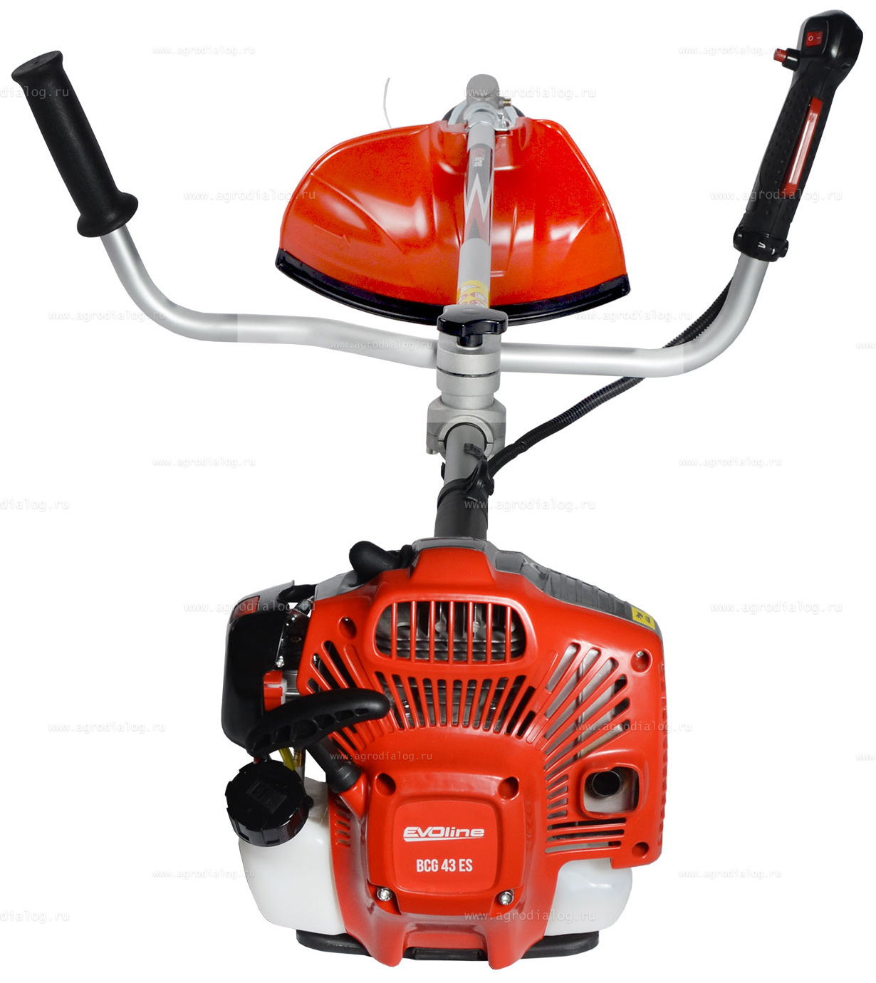 - Бензокоса EVOline BCG 43 ES оборудована ранцевой ременной оснасткой, которая оптимальным образом распределяет нагрузку между плечами, грудной клеткой и спиной. Широкие плечевые ремни снижают нагрузку на тело пользователя.