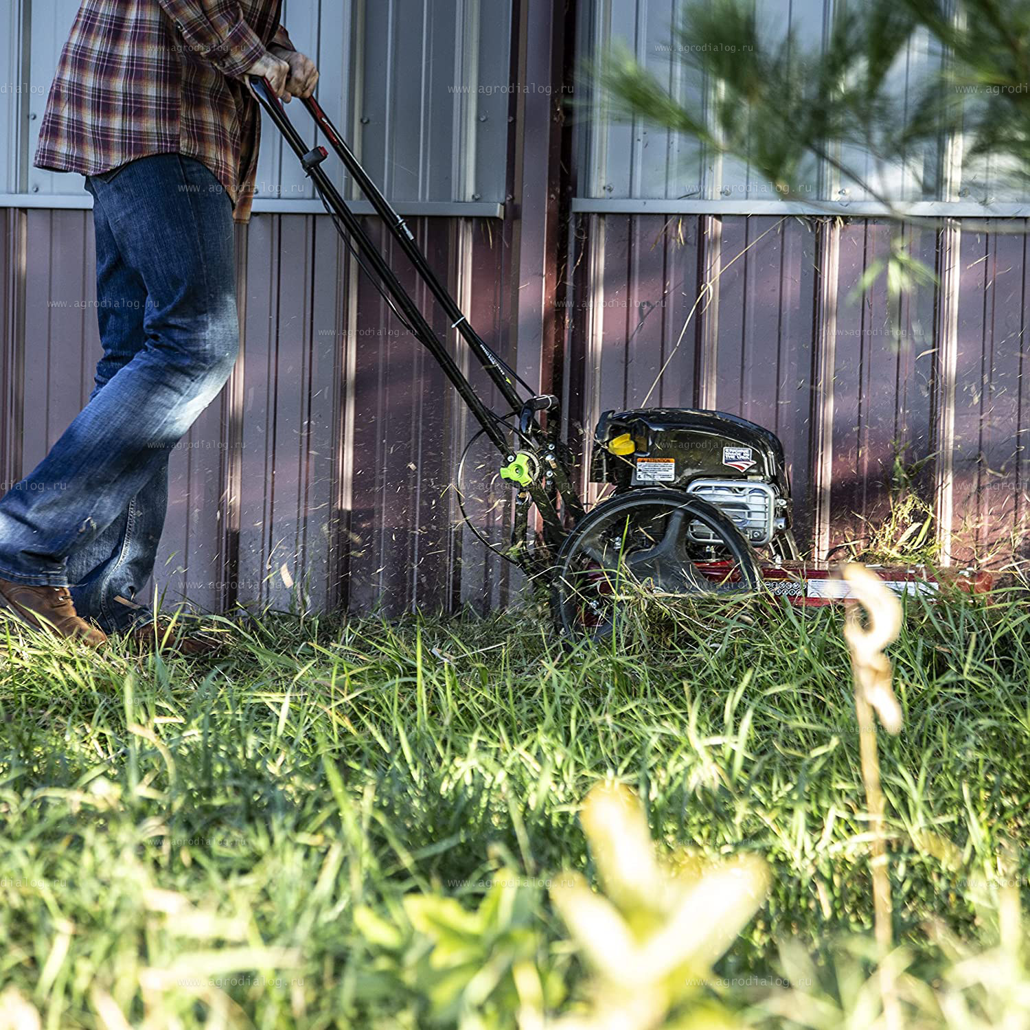 - Колесный триммер Earthquake 37676 оснащен леской большого диаметра для скашивания сорняков и кустарников любой сложности.