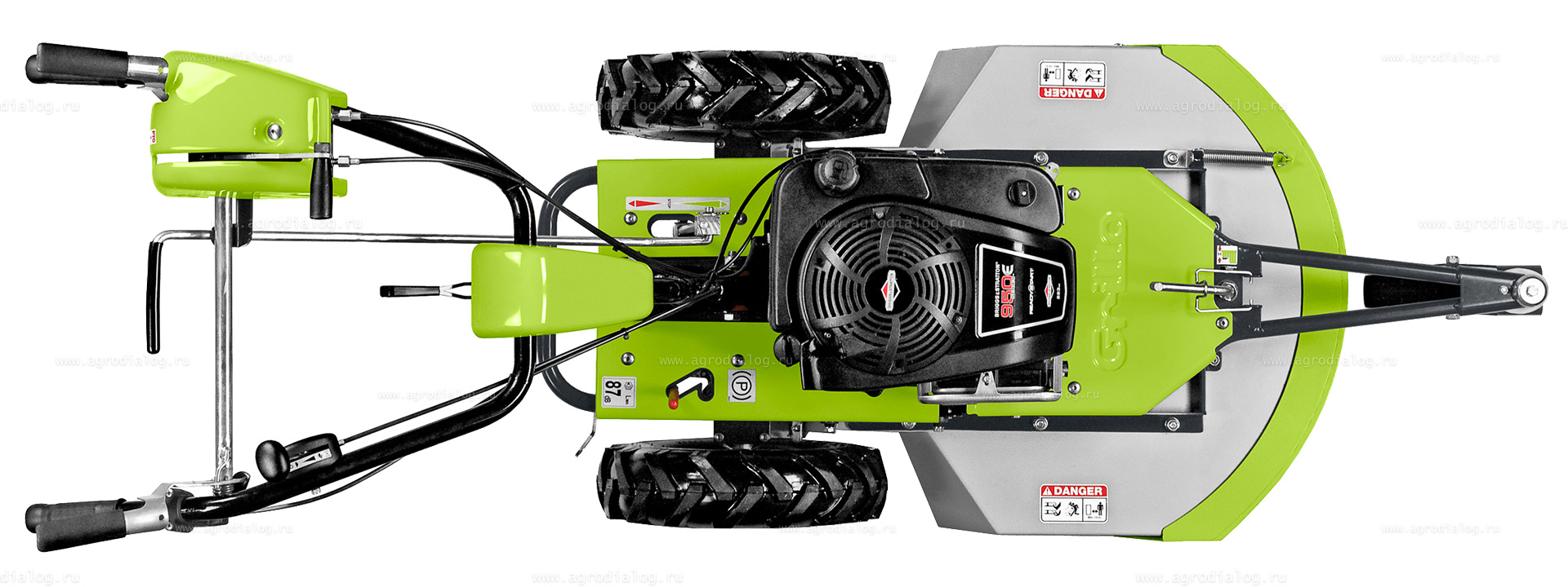 - Гидростатическая трансмиссия обеспечивает бесступенчатую регулировку для выбора оптимальной скорости при работе в соответствии с типом грунта и скашиваемой растительности, задний ход полезен при выполнении маневров и переходе на другое место.