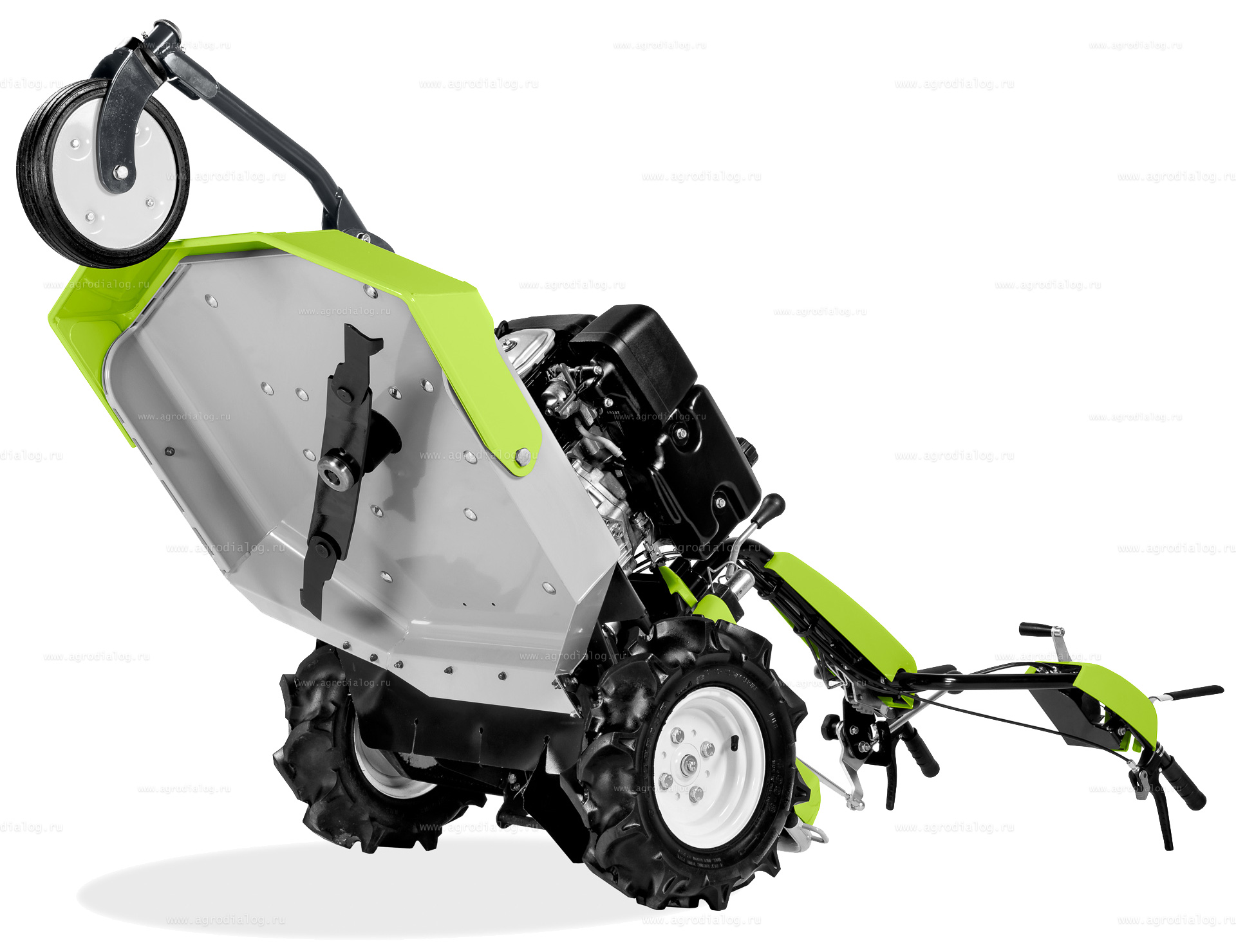 - Переднее поворотное колесо обеспечивает превосходное управление косилкой.