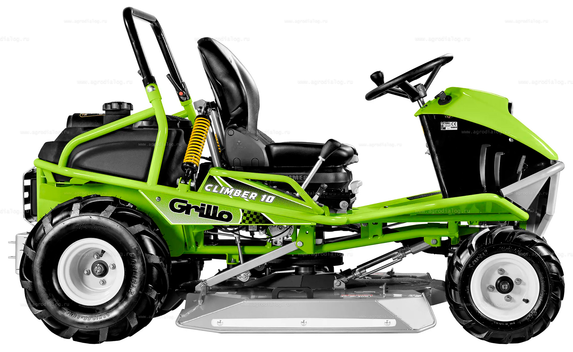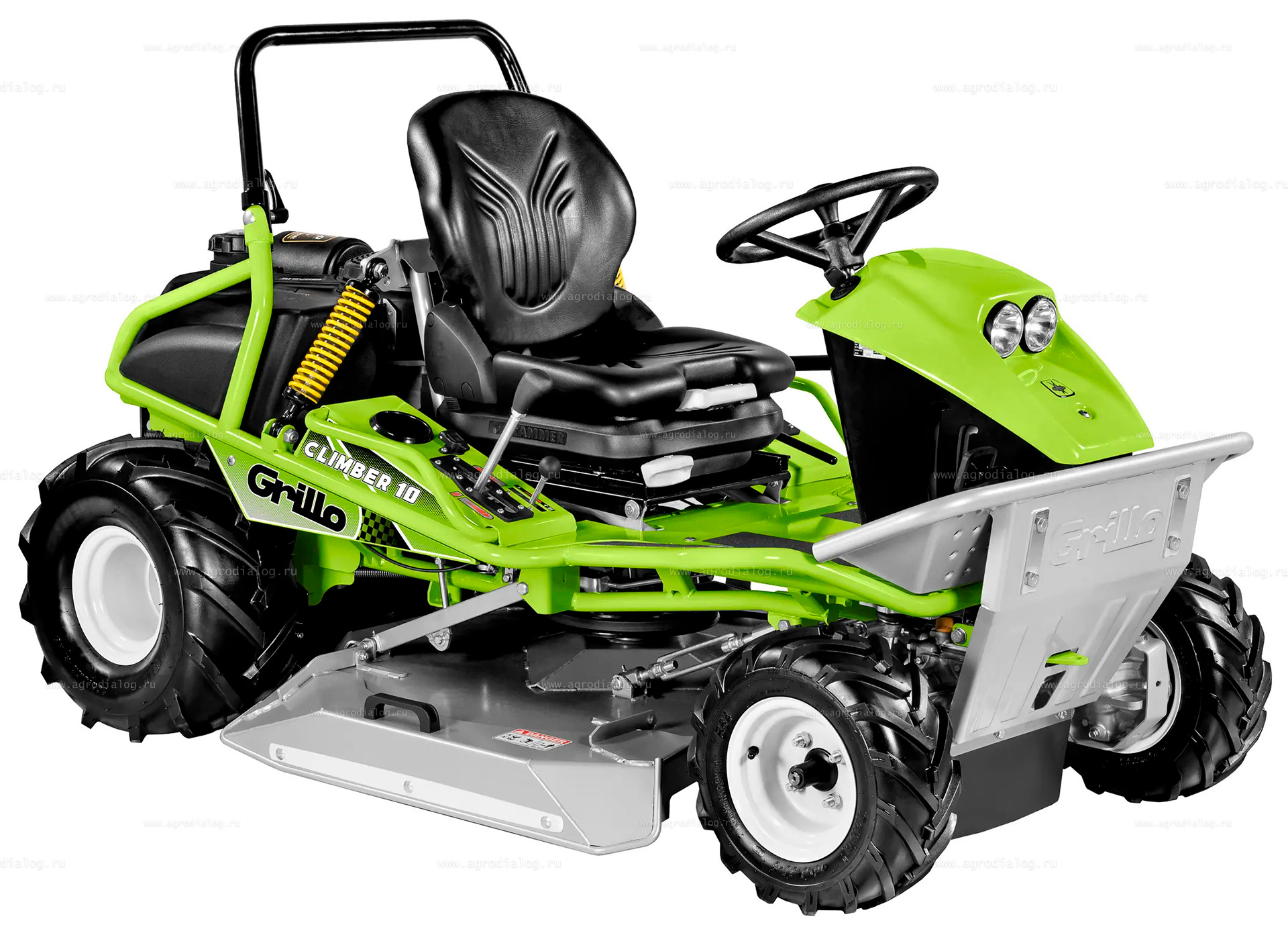 - Трубчатый каркас, сцепка для прицепа, счётчик моточасов и передняя фара входят в стандартную комплектацию.