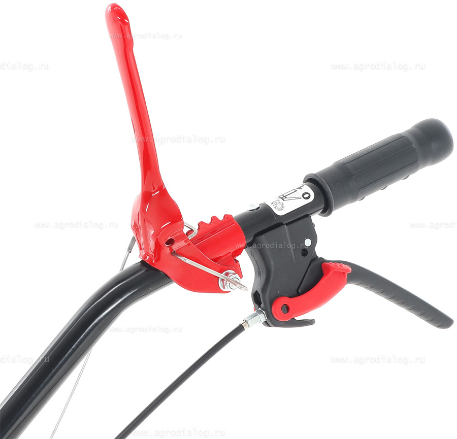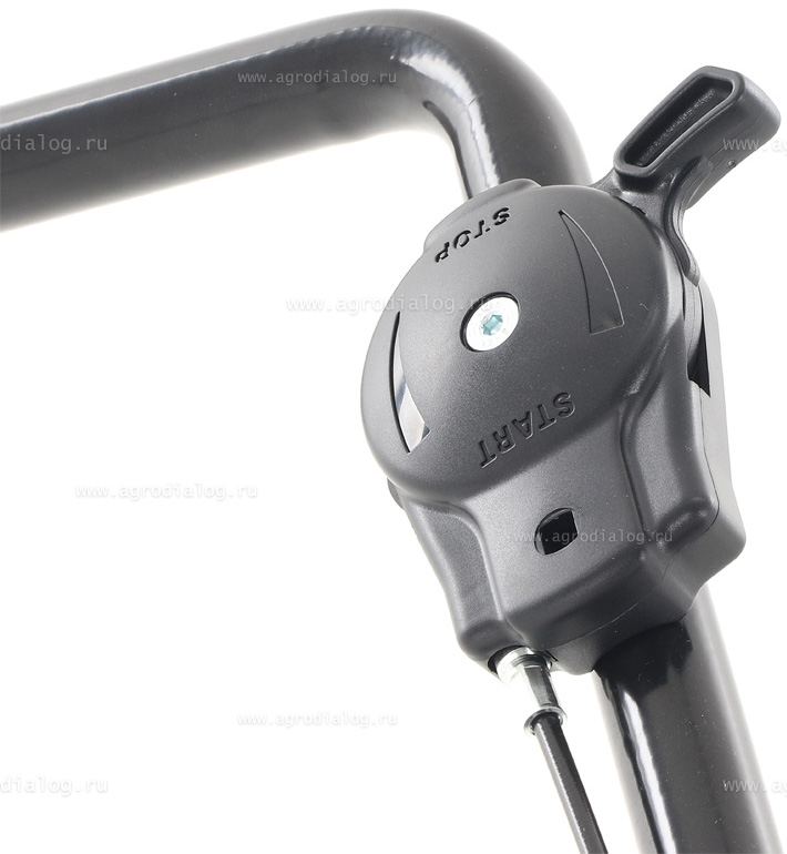 - Эргономичная рукоятка управления обеспечивает минимальное напряжение рук в ходе работы, а возможность регулировки по высоте позволяет подобрать наиболее удобное положение людям разного роста. Регулировка в горизонтальной плоскости позволяет производить кошение вплотную к ограждениям или сооружениям.