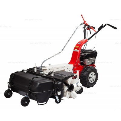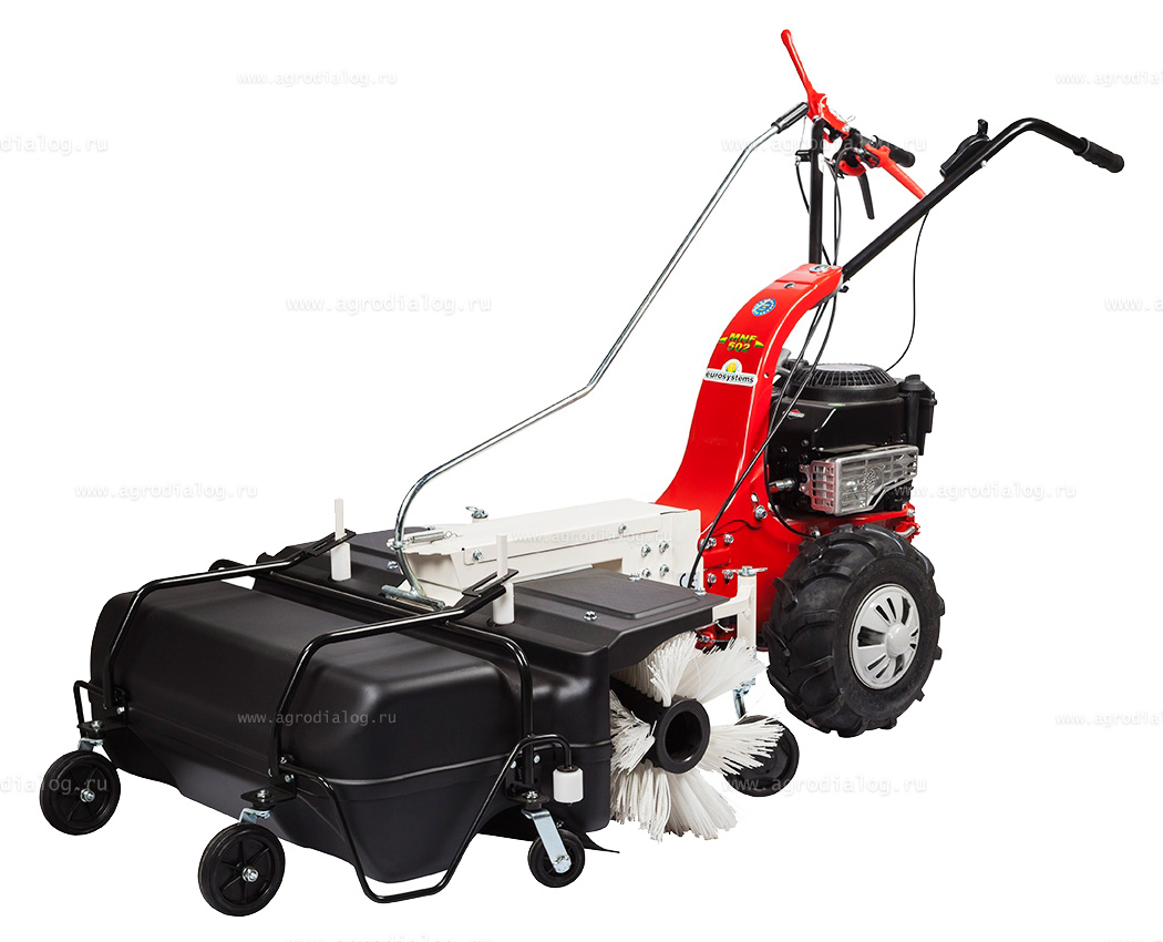 Коммунальная щетка с бункером 907410000 для Eurosystems MINIEFFE 502 RM. Щетка регулируется под пятью разными углами. Ширина щетки 88 см. Диаметр щетки 30 см. ABS коллектор 85x40x29 см. с опорными колесами.