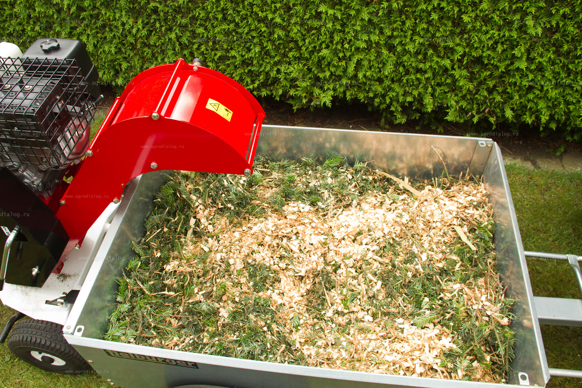 - Высокое расположение разгрузочного дефлектора позволяет удобно выгружать измельченный материал в прицеп, тележку или мешок.
