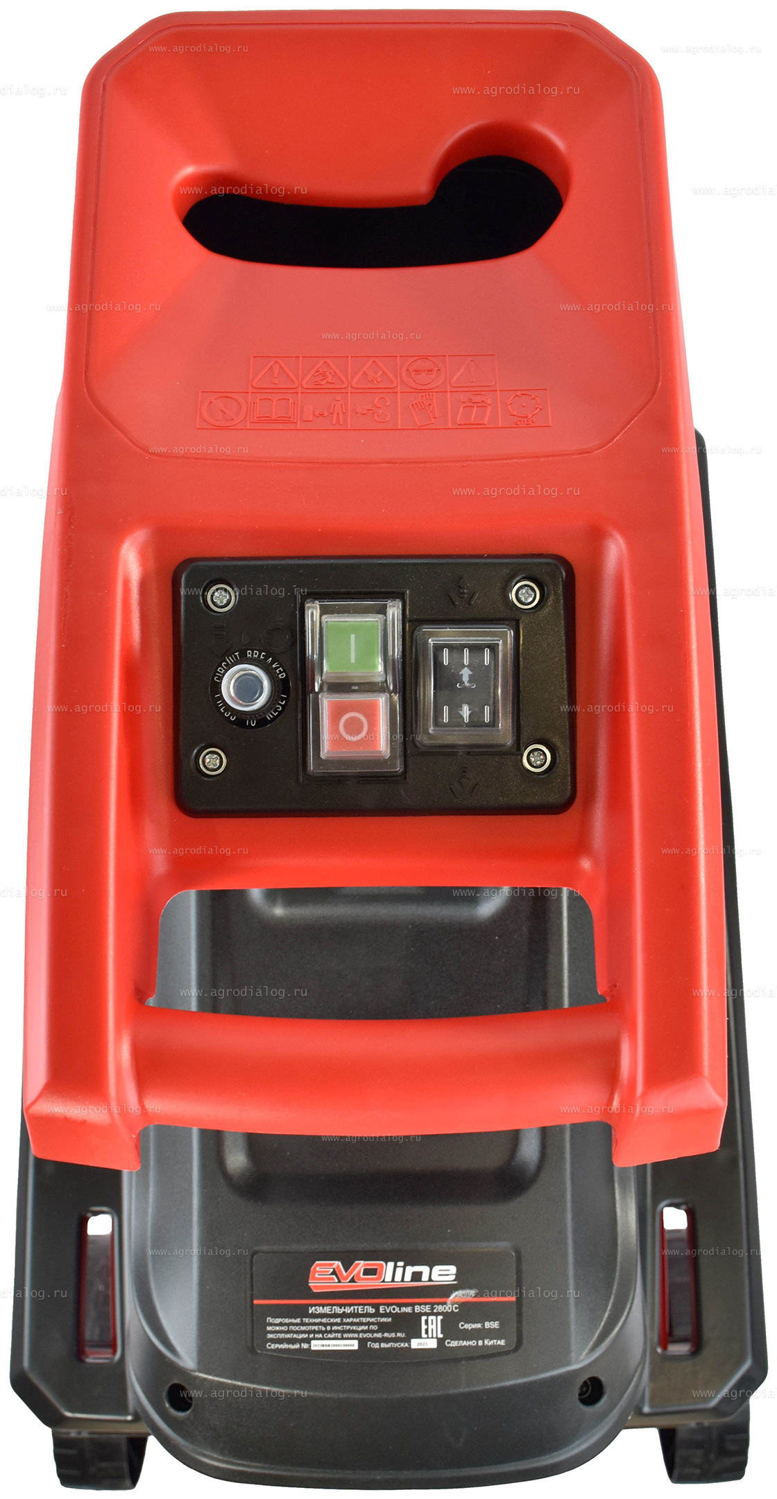 - Электрический садовый измельчитель EVOline BSE 2800 C оснащен системой реверса позволяющей легко извлекать застрявший материал.