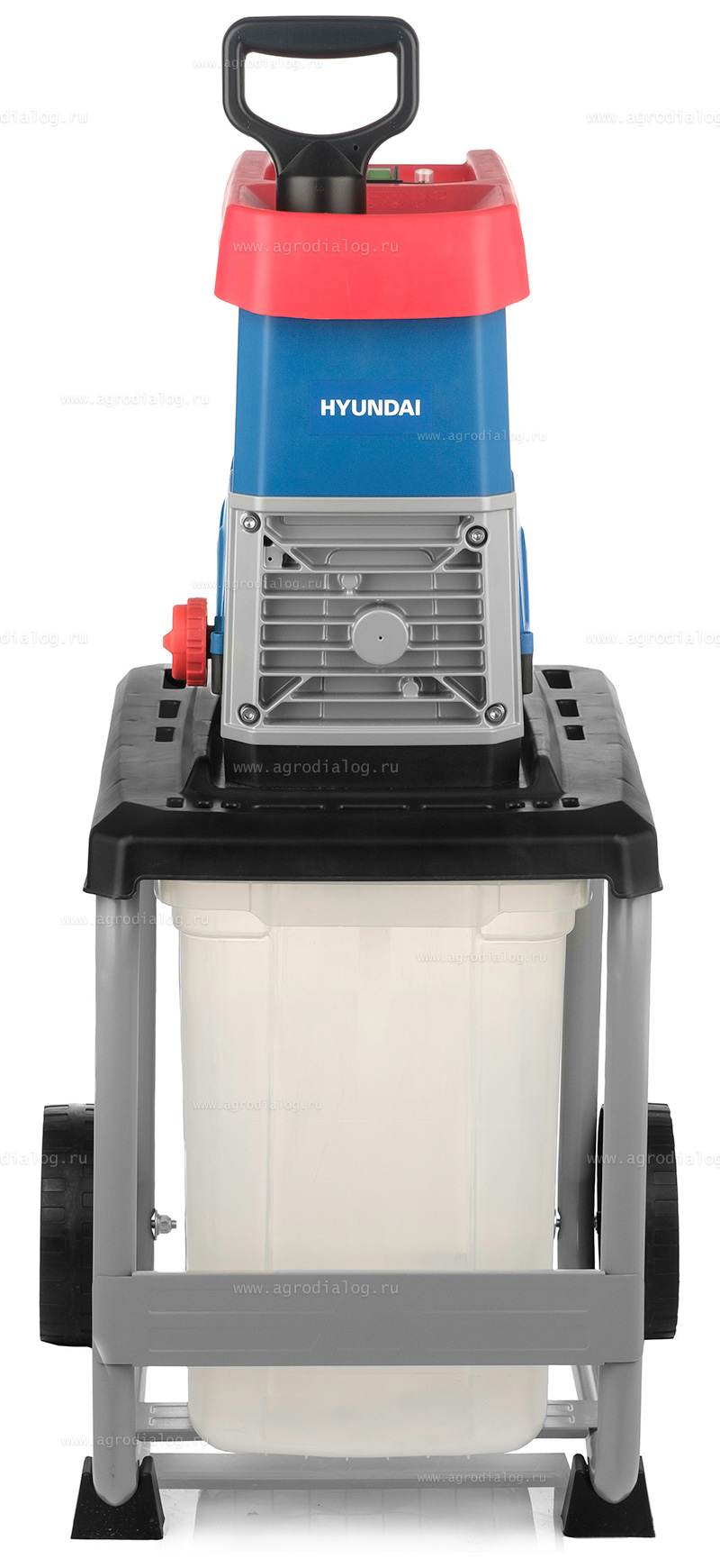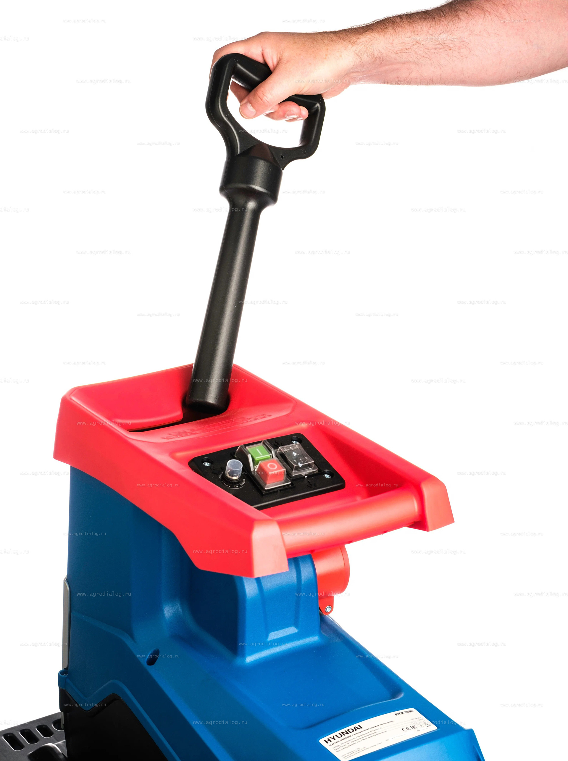 - Электрический измельчитель веток Hyundai HYCH 2800 оснащен системой реверса позволяющей легко извлекать застрявший материал.