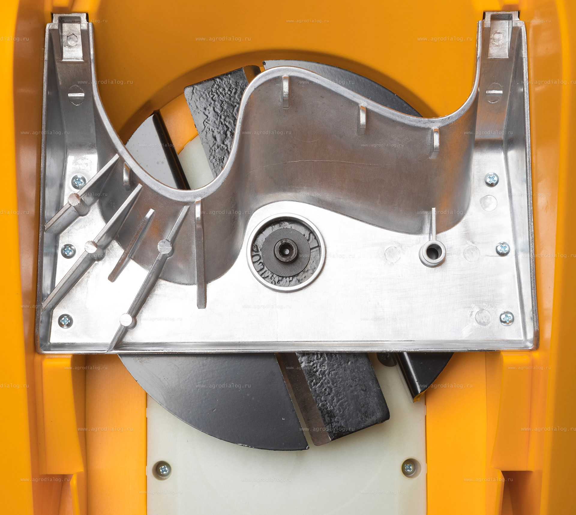 - Система измельчения – диск с оборотными лезвиями из высокопрочной углеродистой стали для эффективной переработки поступающего материала диаметром до 4 сантиметров.