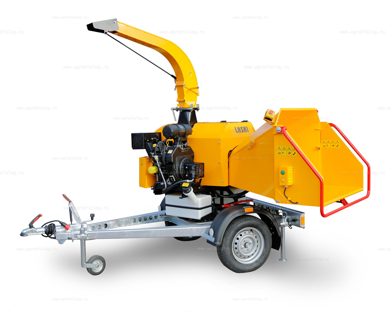 Коммунальный измельчитель веток Laski LS 160 PB оснащен продуманным поворотным механизмом с жесткой фиксацией в одно из 12 рабочих положений. Данное техническое решение дает возможность прямого доступа к загрузочному желобу с любой стороны удобной для работы оператора. Техника размещена на одноосном колесном шасси, оснащенным тормозной системой, габаритными огнями, сигналами поворота и стоп-огнями. Наличие инерционного тормоза позволяет производить буксировку измельчителя с помощью любого транспортного средства.
