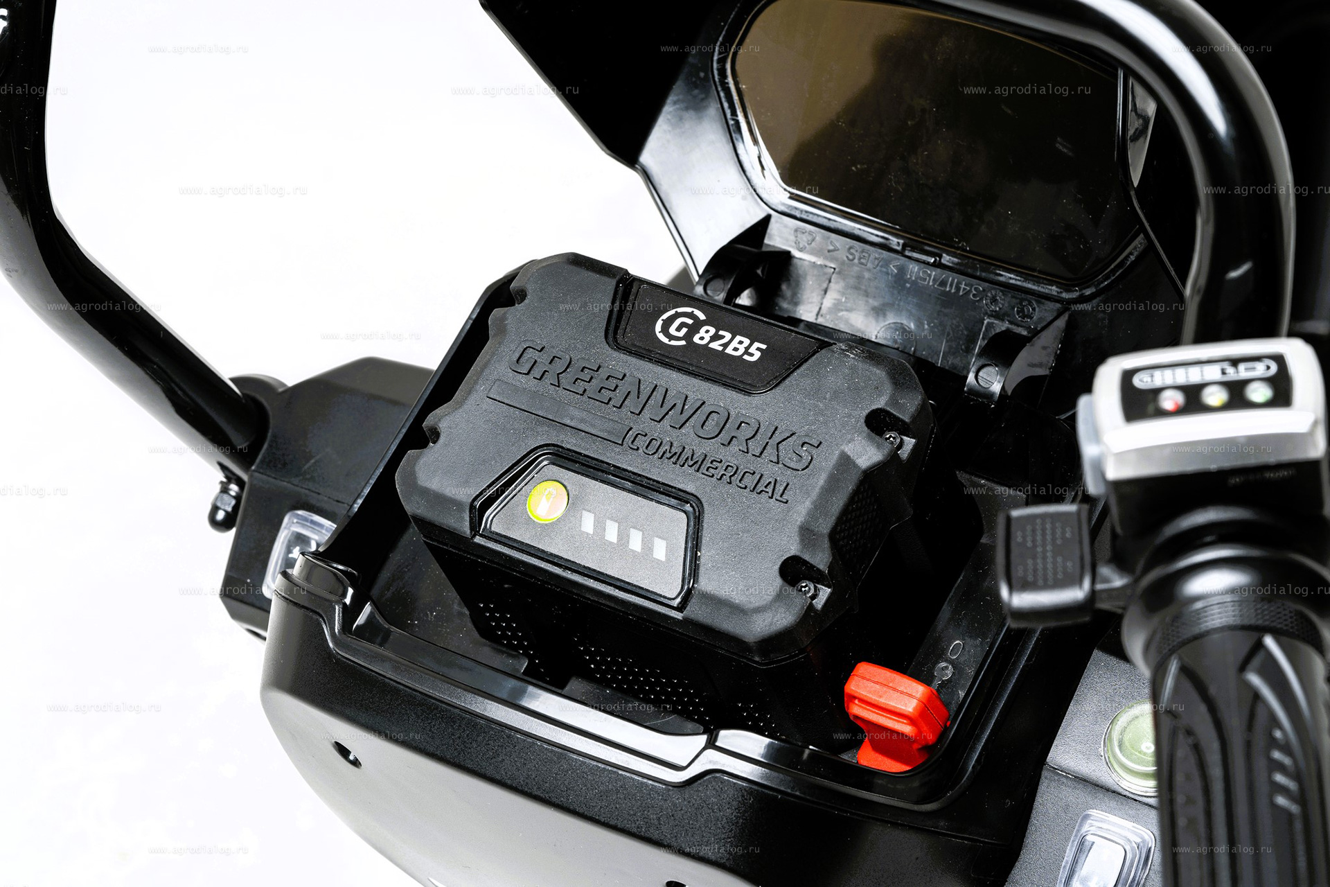 - Самоходная тележка Greenworks 82GCK25 работает от литий-ионной аккумуляторной батареи, которая подходит ко всем инструментам аккумуляторной системы Greenworks 82 Commercial.