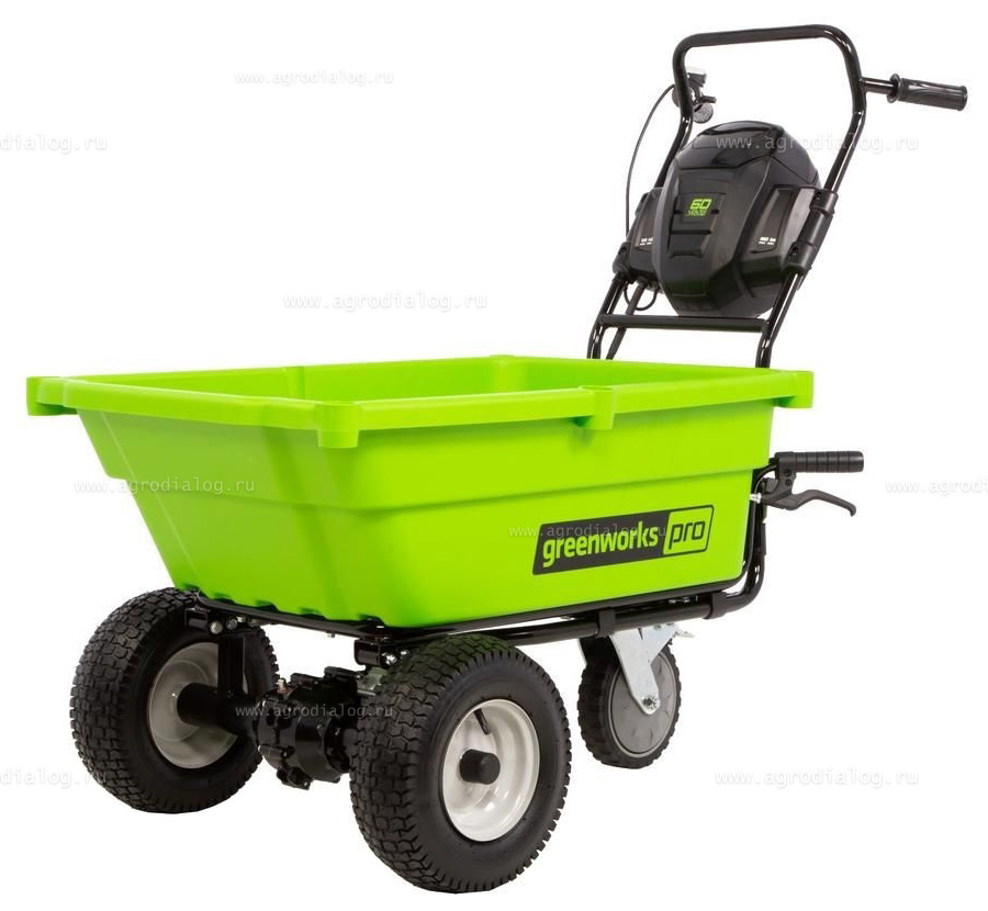Аккумуляторная самоходная тележка Greenworks G60GCK4 отлично зарекомендовала себя у профессионалов и любителей в области садоводства, ландшафтного дизайна и строительства.