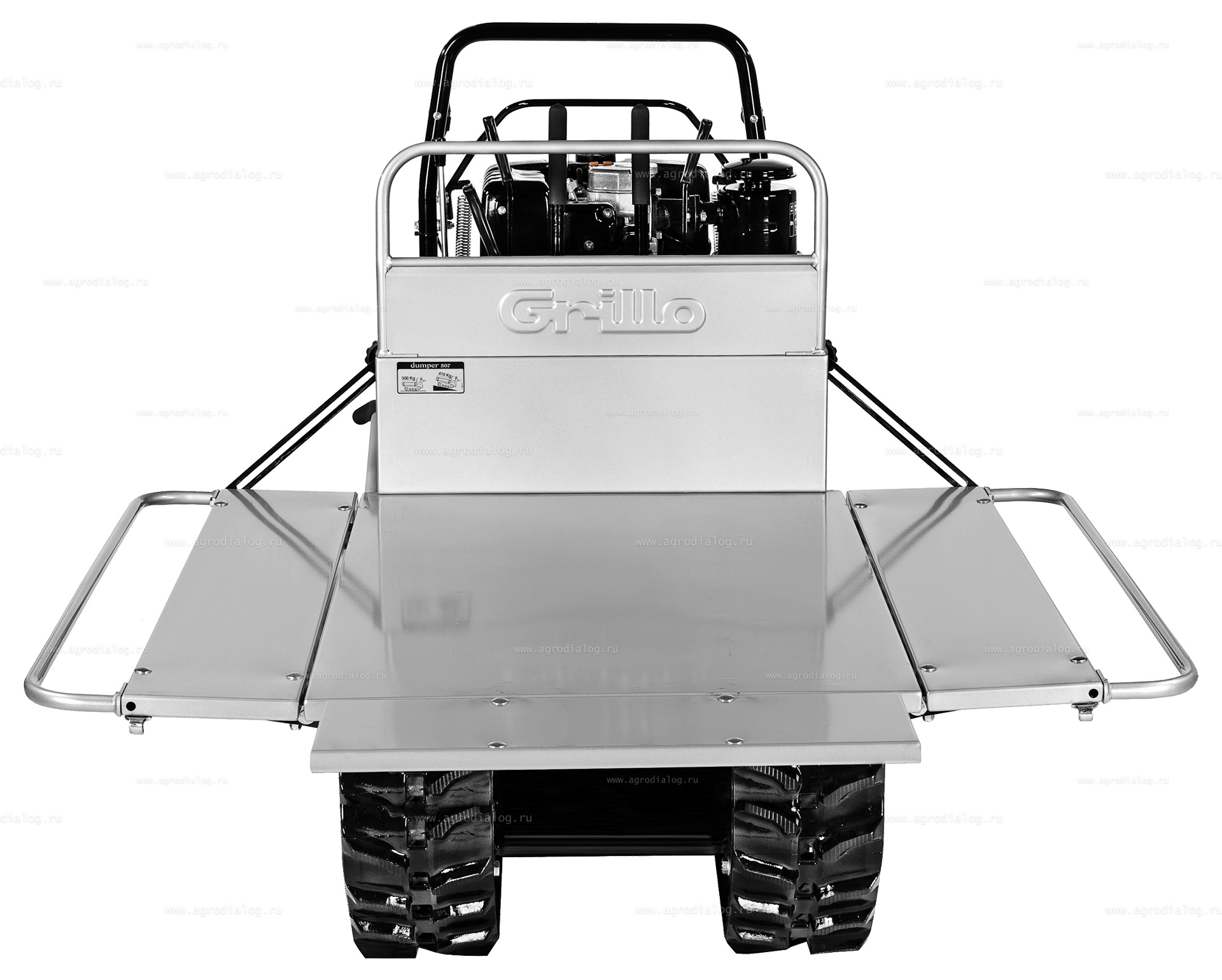 Самоходная тележка Grillo Dumper 507 AE (Robin-Subaru) подходит в любых секторах применения: в сельском хозяйстве, на строительной площадке, животноводстве, промышленности и садоводстве. Многочисленные комплектующие, которые можно опционально установить, позволяют использовать её не только как тележку, но и как универсальную машину. Благодаря механической коробке отбора мощности (приобретается отдельно) и переднему гидравлическому подъёмнику (приобретается отдельно) могут быть установлены: нож-отвал, роторный снегоуборщик, щетка, косилка-измельчитель. Профиль гусеничного хода обеспечивает сцепление с любым грунтом, обеспечивая необходимую стабильность и безопасность на рыхлых почвах с низкой несущей способностью и при сильном наклоне. Система рулевого управления позволяет постепенно менять угол поворота с помощью соответствующих рычагов. С блокированной гусеницей самоходная тележка Grillo Dumper 507 AE (Robin-Subaru) может легко выполнить очень крутой поворот или поворот с модулируемым радиусом, даже широким. На первом этапе движения одного из двух рычагов с гусеницы снимается сцепление, продолжая движение, гусеница постепенно выполняет торможение с помощью барабанного тормоза. Гусеницы поддерживаются стальными роликами, установленными на втулках и оснащенными маслёнками, это необходимые условия, обеспечивающие надёжность и долговечность. Передние ролики оснащены уравнительными пружинами, которые помогают в тех случаях, когда посторонние предметы попадают под ролики или между гусеницей и ведущим венцом, что защищает от поломки и гарантирует натяжение гусеницы. Передний наклон гусеницы помогает преодолевать ступени или препятствия. При отпускания рычага движения срабатывает автоматический тормоз, который обеспечивает немедленную остановку даже при максимальной нагрузке и при уклоне до 48%. Кузов не входит в стандартный комплект поставки и заказывается отдельно. Кропотливой сборкой самоходной тележки Grillo Dumper 507 AE (Robin-Subaru) и её тщательной проверкой занимается квалифицированной персонал. Все компоненты, от самых простых до самых сложных - все изготавливается в Италии с использованием лучших материалов и самых современных технологий, что позволяет постоянно добиваться высокого качества под 100% контролем. Оборудование компании Grillo окрашивается двойным слоем электростатической порошковой краски. Сначала выполняются промывочная и подготовительная ванна, затем поверхность грунтуют и проводят термическую обработку, это лучшая основа для нанесения окрасочных слоёв. После второго слоя краски проводится дополнительная термическая обработка при температуре 190°С, которая обеспечивает твёрдость и блеск. При завершающих приёмочных испытаниях самоходная тележка проверяется с включенным двигателем. Это ещё одна и заключительная гарантия высокого качества продукции. Итак, если для Вас важно качество сборки, низкая утомляемость оператора, высокая производительность, безопасность работы, функциональность, то самоходная тележка Grillo Dumper 507 AE (Robin-Subaru) - правильный выбор.
