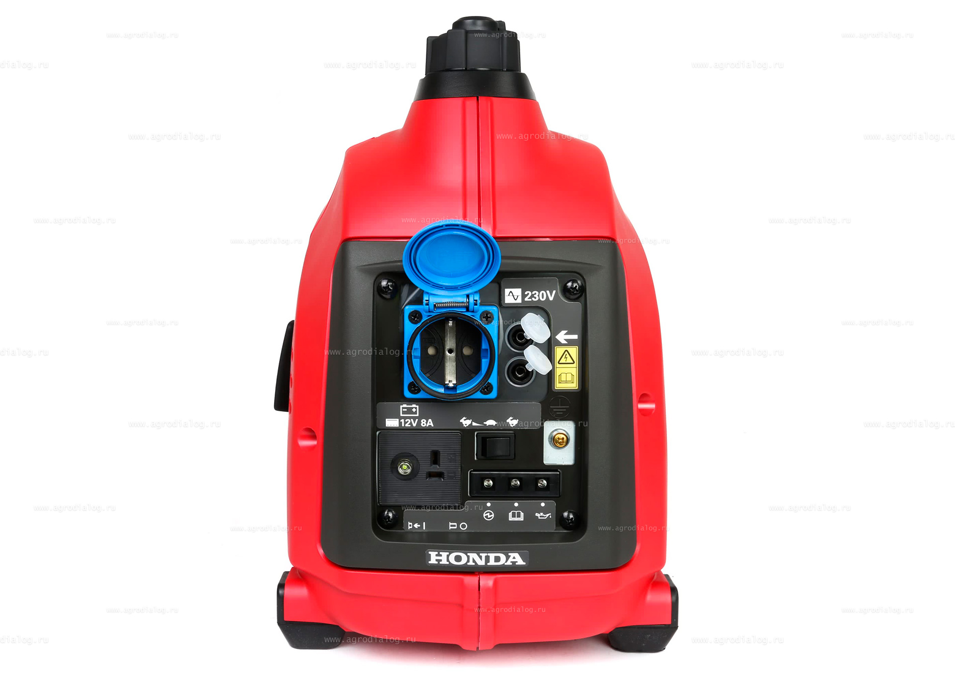 - 1 розетка - 220В/10А с защитным кожухом / клеммы для зарядки 12 Вольтовых аккумуляторных батарей - 12В/8А / 2 для параллельного подключения второго бензогенератора Honda EU10i