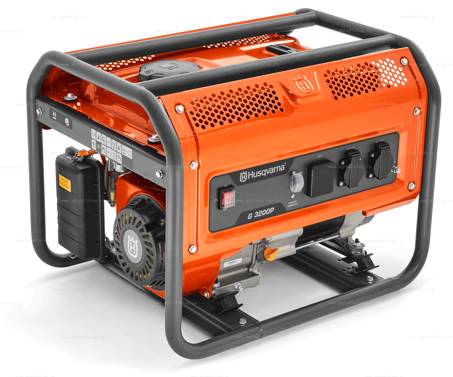 - Комфортабельность – для снижения вибрационной нагрузки, бензиновый генератор Husqvarna G3200P закреплен на раме с помощью резиновых опор, значительно снижающих интенсивность вибраций.