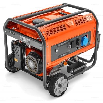 - Бензиновый генератор Husqvarna G5500P поставляется в комплекте с колёсами и складной рукояткой, что обеспечивает удобство перемещения и транспортировки.