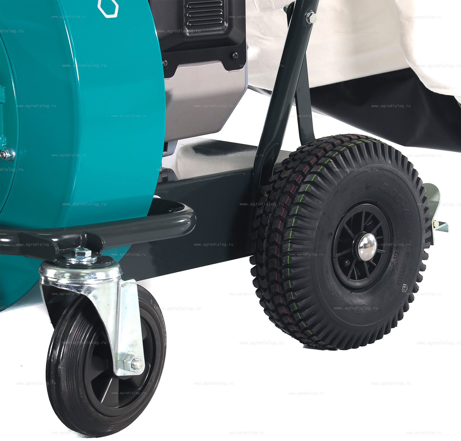 - Передние колеса являются свободно вращающимися для обеспечения уменьшенного радиуса поворота и максимальной маневренности, большие задние колеса гарантируют уверенное передвижение на территориях, имеющих сложный рельеф местности. Шариковые подшипники гарантируют плавность хода и минимальный люфт даже после многолетней эксплуатации.