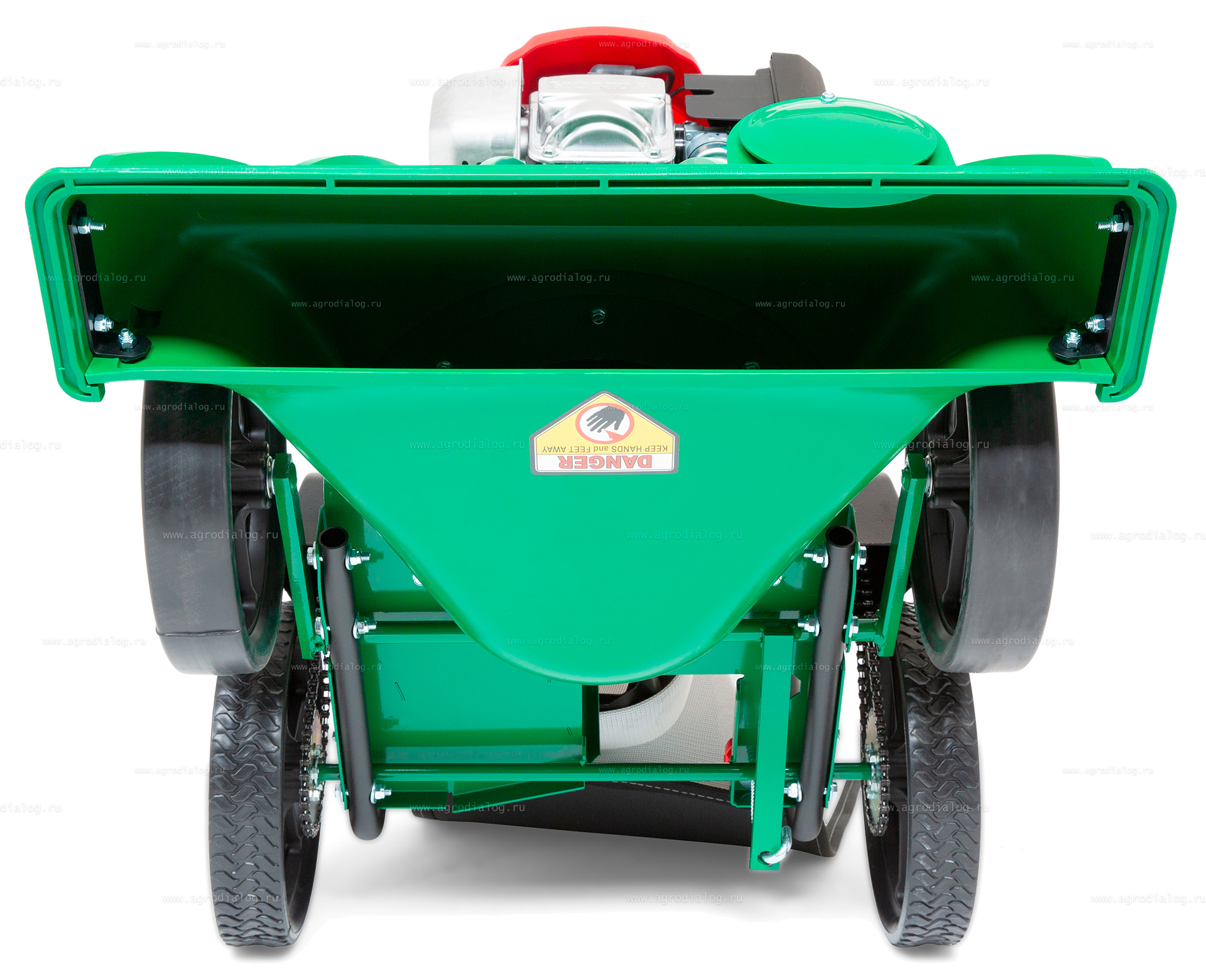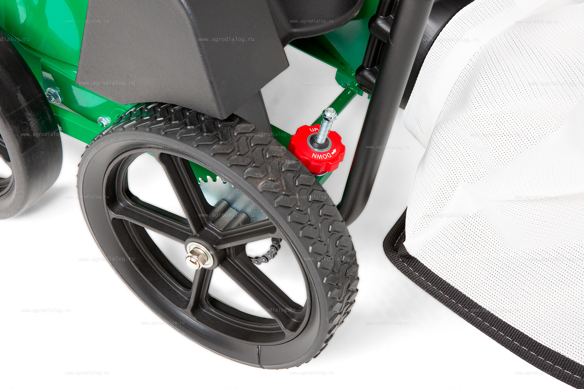 • Цепной привод на колеса обеспечивает самостоятельное перемещение пылесоса по участку, оператору требуется только менять направление движения.