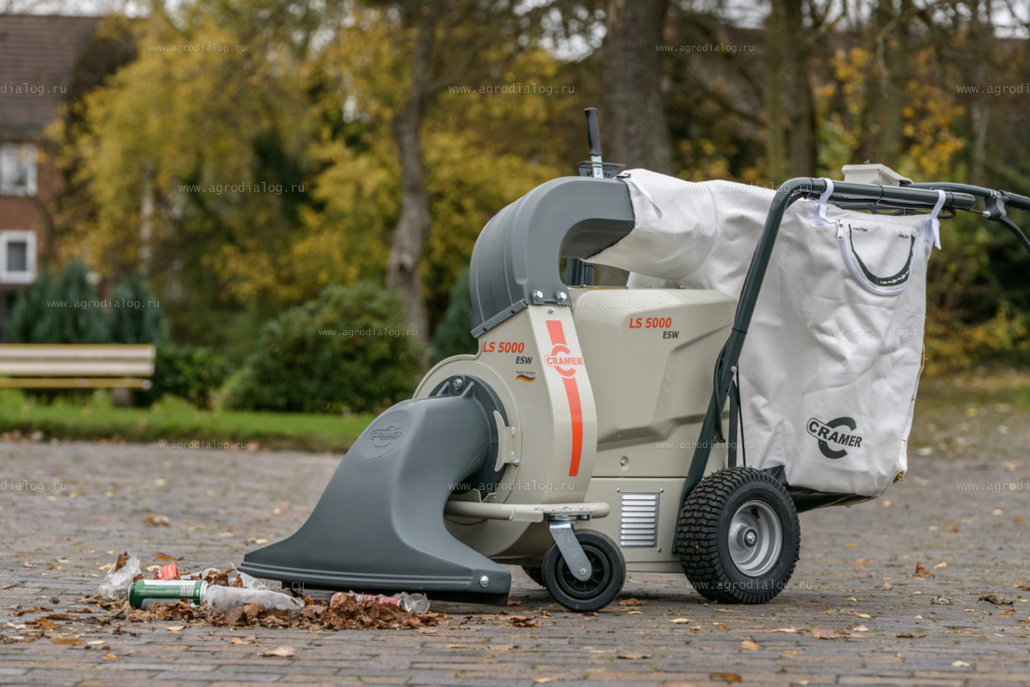 - Профессиональный аккумуляторный садовый пылесос Cramer LS5000 E SW оснащен центральной 8-ми ступенчатой регулировкой высоты всасывающего сопла с рабочего места оператора.