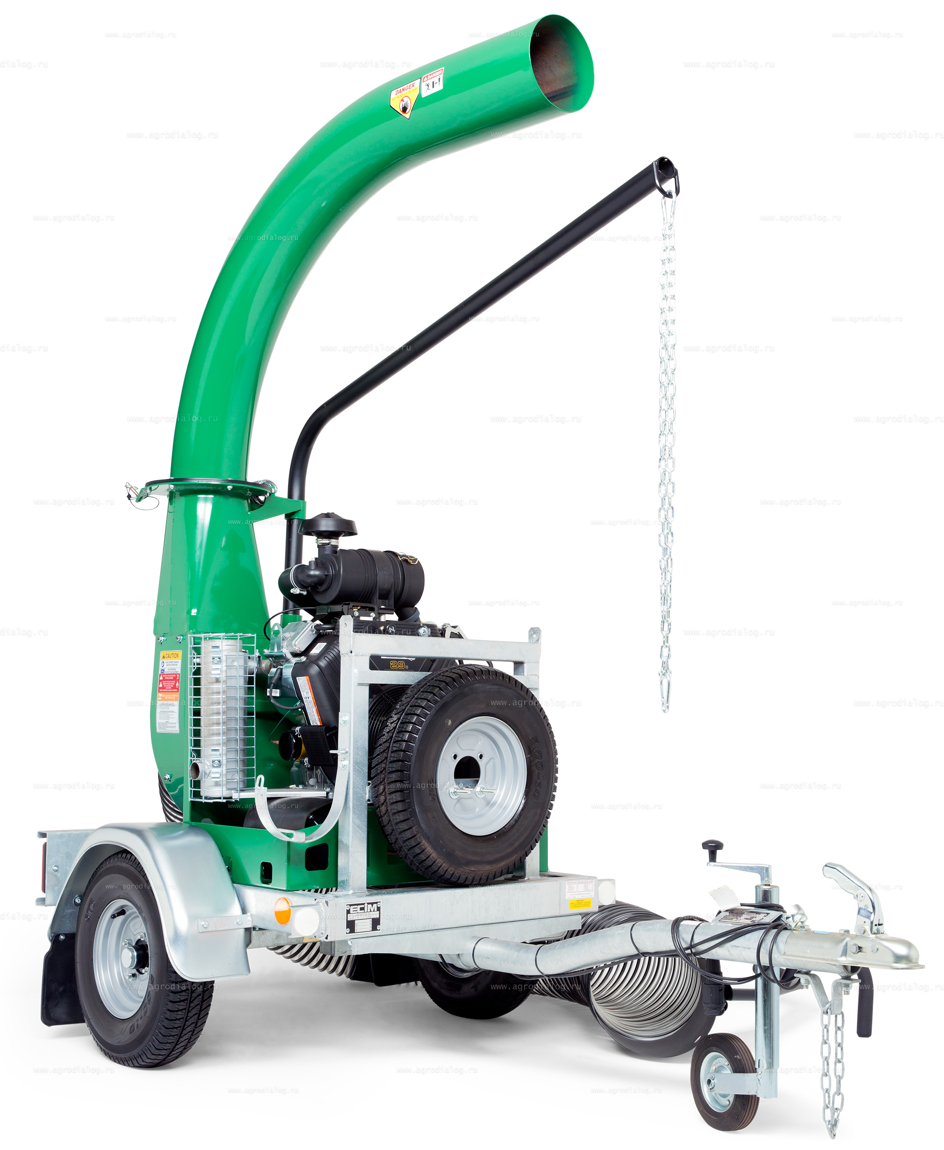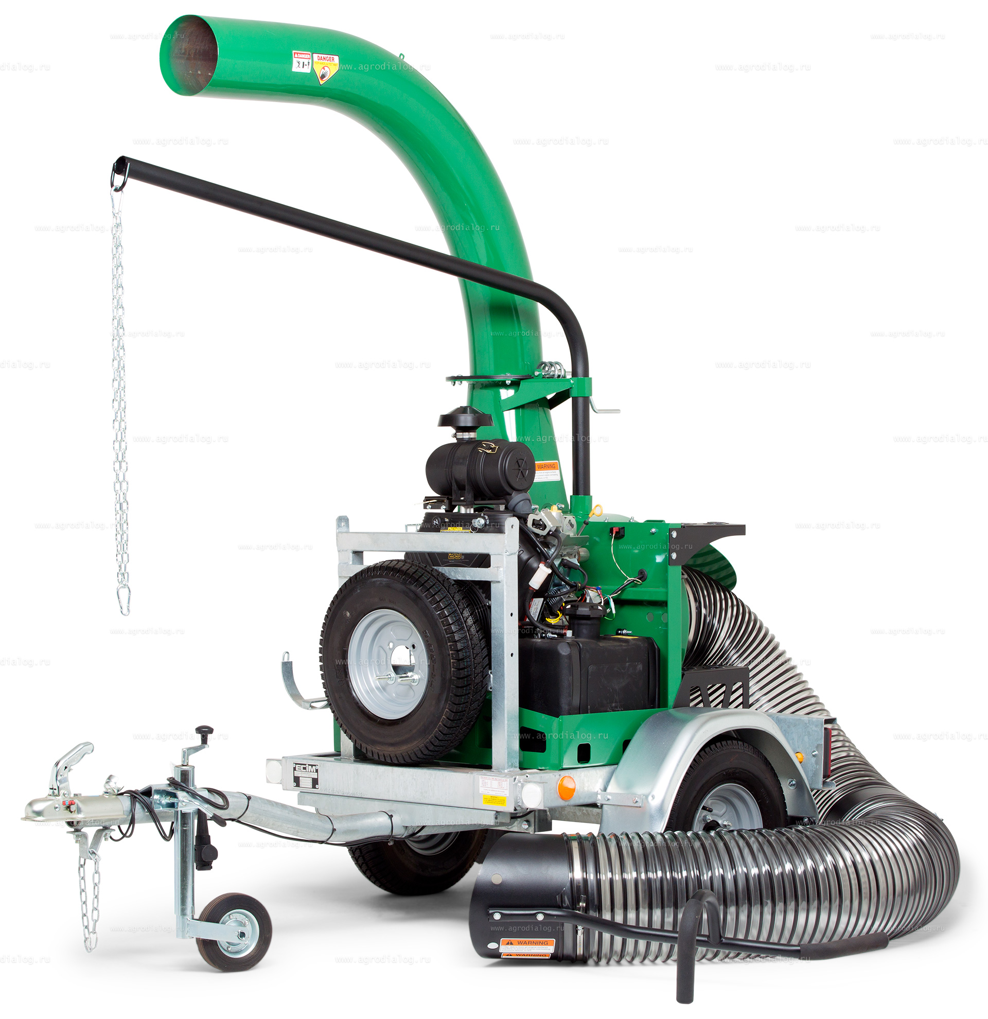 Принцип работы пылесоса довольно простой, с помощью гофрированного всасывающего шланга мусор попадает на измельчающие ножи, которые его разбивают, а затем на крыльчатку, которая отбрасывает его через разгрузочный шланг в приемный бункер – накопитель. Его можно устанавливать на любые коммерческие транспортные средства с открытым кузовом или садовый трактор с прицепом.
