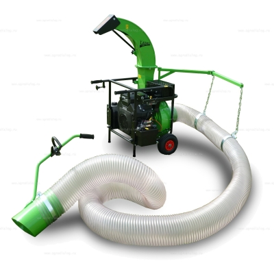 Принцип работы пылесоса довольно простой, с помощью гофрированного всасывающего шланга мусор попадает на измельчающие ножи, которые его разбивают, а затем на крыльчатку, которая отбрасывает его через разгрузочный шланг в приемный бункер – накопитель. Его можно устанавливать на любые коммерческие транспортные средства с открытым кузовом или садовый трактор с прицепом.