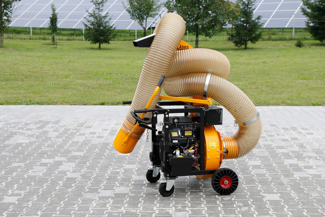 Принцип работы пылесоса довольно простой, с помощью гофрированного всасывающего шланга мусор попадает на измельчающие ножи, которые его разбивают, а затем на крыльчатку, которая отбрасывает его через разгрузочный шланг в приемный бункер – накопитель. Его можно устанавливать на любые коммерческие транспортные средства с открытым кузовом или садовый трактор с прицепом.
