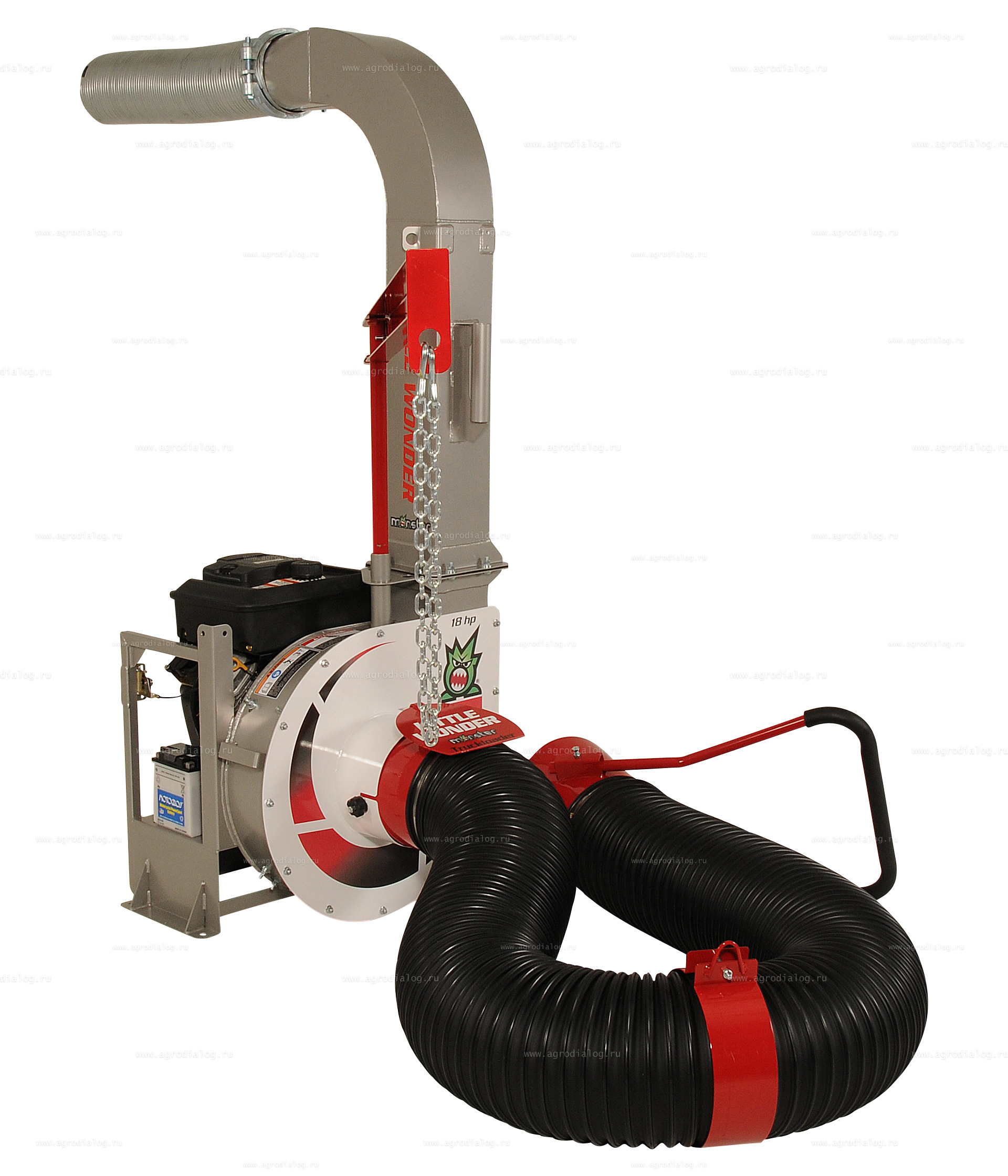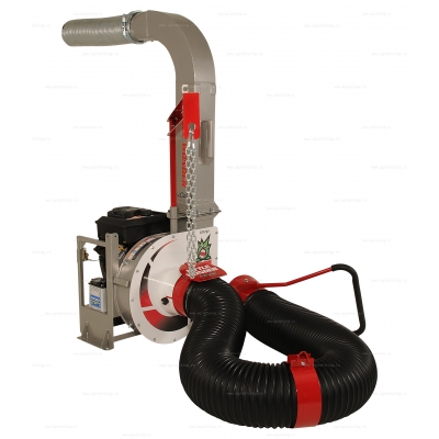 Принцип работы пылесоса довольно простой, с помощью гофрированного всасывающего шланга мусор попадает на измельчающие ножи, которые его разбивают, а затем на крыльчатку, которая отбрасывает его через разгрузочный шланг в приемный бункер – накопитель. Его можно устанавливать на любые коммерческие транспортные средства с открытым кузовом или садовый трактор с прицепом.