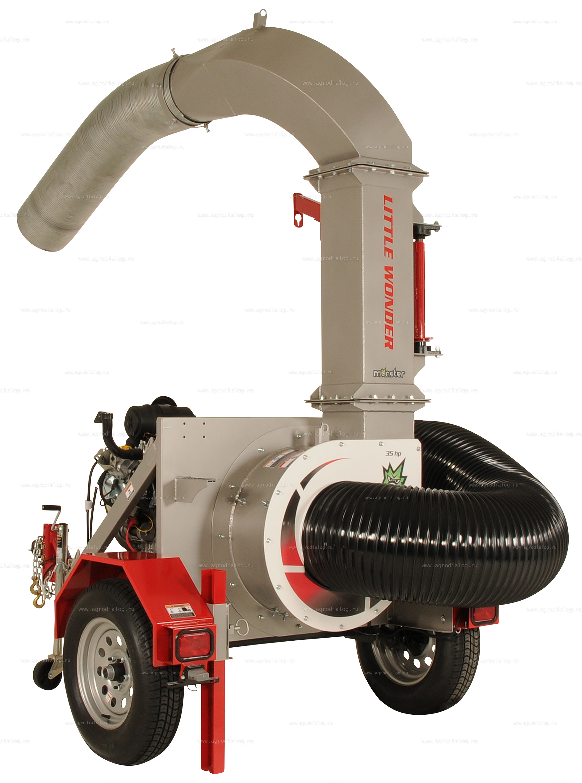 Прицепной коммунальный пылесос Little Wonder Monster Truck Loader 35HP – это уникальная многофункциональная техника, предназначенная для уборки парковых и дворовых территорий от мокрых или сухих листьев, скошенной травы, мелкой древесной щепы.