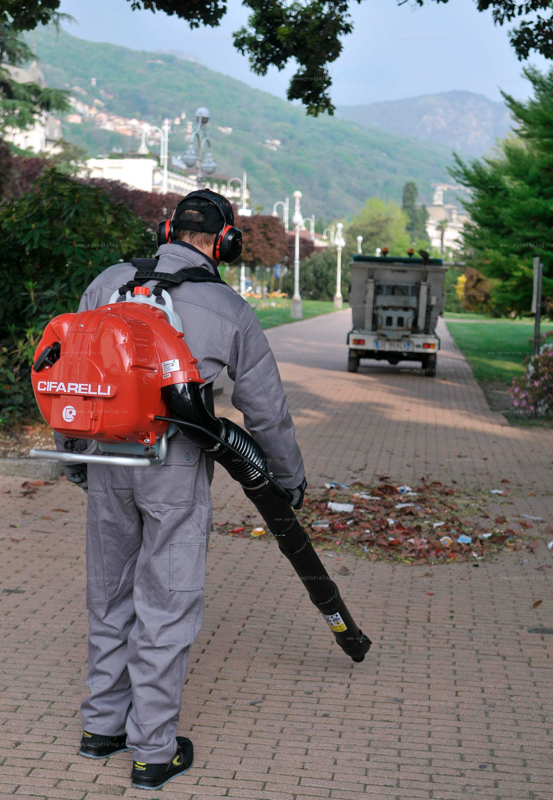 Садовая воздуходувка ранцевая Cifarelli BL6S используется в основном для производительной очистки больших площадей от опавшей листвы, скошенной травы или бумажного мусора.