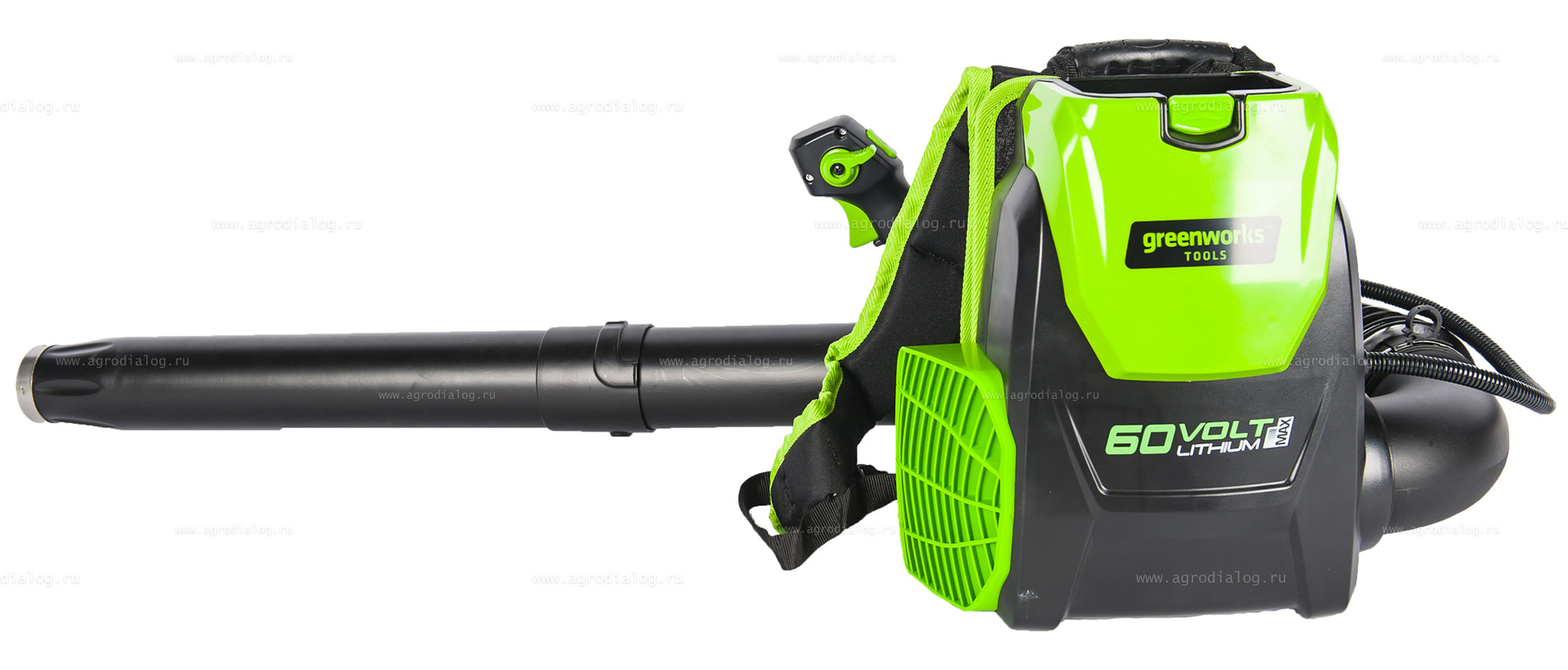 - Аккумуляторная садовая воздуходувка ранцевая Greenworks GD60BPB работает от батареи, которая подходит ко всем инструментам аккумуляторной системы Greenworks 60V. Один аккумулятор и одно зарядное устройство для разных групп инструментов – это рационально и эффективно.