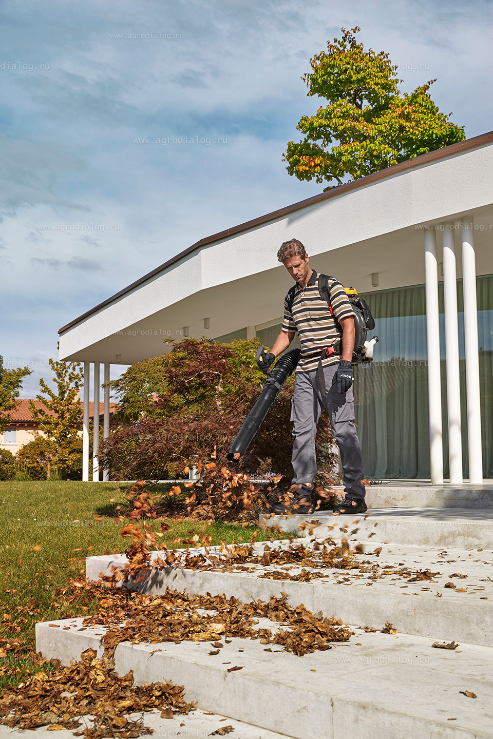 Большой загородный участок – отличное место для отдыха. Но поддерживать его в порядке непросто – как и квартира, он нуждается в уборке. Особенно актуальной проблема становится осенью, во время листопада. Конечно, густой ковер из опавших листьев выглядит очень красиво, они приятно шуршат под ногами, но эта красота не вечна – с приходом дождей они отсыреют, и будут смотреться куда менее привлекательными. А еще не стоит забывать, что в палой листве зимует множество садовых паразитов. Так что с уборкой лучше не затягивать. И здесь возникает вопрос – а как подмести, скажем, газон площадью хотя бы 10 соток? Неужто браться за грабли? Но это ведь так утомительно. А есть еще дорожки, клумбы. Отличное решение проблемы – садовая воздуходувка ранцевая Stiga SBP 375.