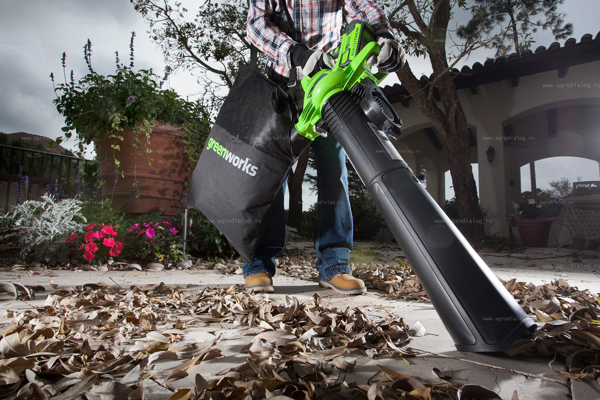 Садовая воздуходувка Greenworks GD40BVK5 понравится не только требовательным профессионалам и увлеченным садоводам, но и их соседям. Не требующий обслуживания, высокоэффективный бесщёточный двигатель гарантирует длительную работу и долгий срок службы инструмента. Большой загородный участок - отличное место для отдыха. Но поддерживать его в порядке непросто - как и квартира, он нуждается в уборке. Особенно актуальной проблема становится осенью, во время листопада. Конечно, густой ковер из опавших листьев выглядит очень красиво, они приятно шуршат под ногами, но эта красота не вечна - с приходом дождей они отсыреют, и будут смотреться куда менее привлекательными. А еще не стоит забывать, что в палой листве зимует множество садовых паразитов. Так что с уборкой лучше не затягивать. И здесь возникает вопрос - а как подмести, скажем, газон площадью хотя бы 10 соток? Неужто браться за грабли? Но это ведь так утомительно. А есть еще дорожки, клумбы. Отличное решение проблемы - аккумуляторная садовая воздуходувка Greenworks GD40BVK5. В режиме воздуходувки она создает мощный поток воздуха, движущийся со скоростью до 83 м/с – это практически ураган. Она сметает и листья с газона, и мусор с садовых дорожек. А когда нужно собрать мусор, то достаточно подсоединить мешок и переставить трубу, после чего воздуходувка превращается в пылесос. Весит садовая воздуходувка Greenworks GD40BVK5 всего 3,6 кг, но с комплектом для садового пылесоса она, конечно же, становится намного тяжелее, поэтому для удобства предусмотрен плечевой ремень. Удобная замена аккумулятора и высокоэффективная система быстрой зарядки означает возможность постоянной работы на профессиональном уровне. Время работы с аккумулятором G40B2/G40B4/G40B5 - 25/50/62 минут. Время зарядки аккумулятора G40B2/G40B4/G40B5 - 60/120/150 минут. Аккумулятор G40B5 и зарядное устройство G40C входят в стандартный комплект поставки.