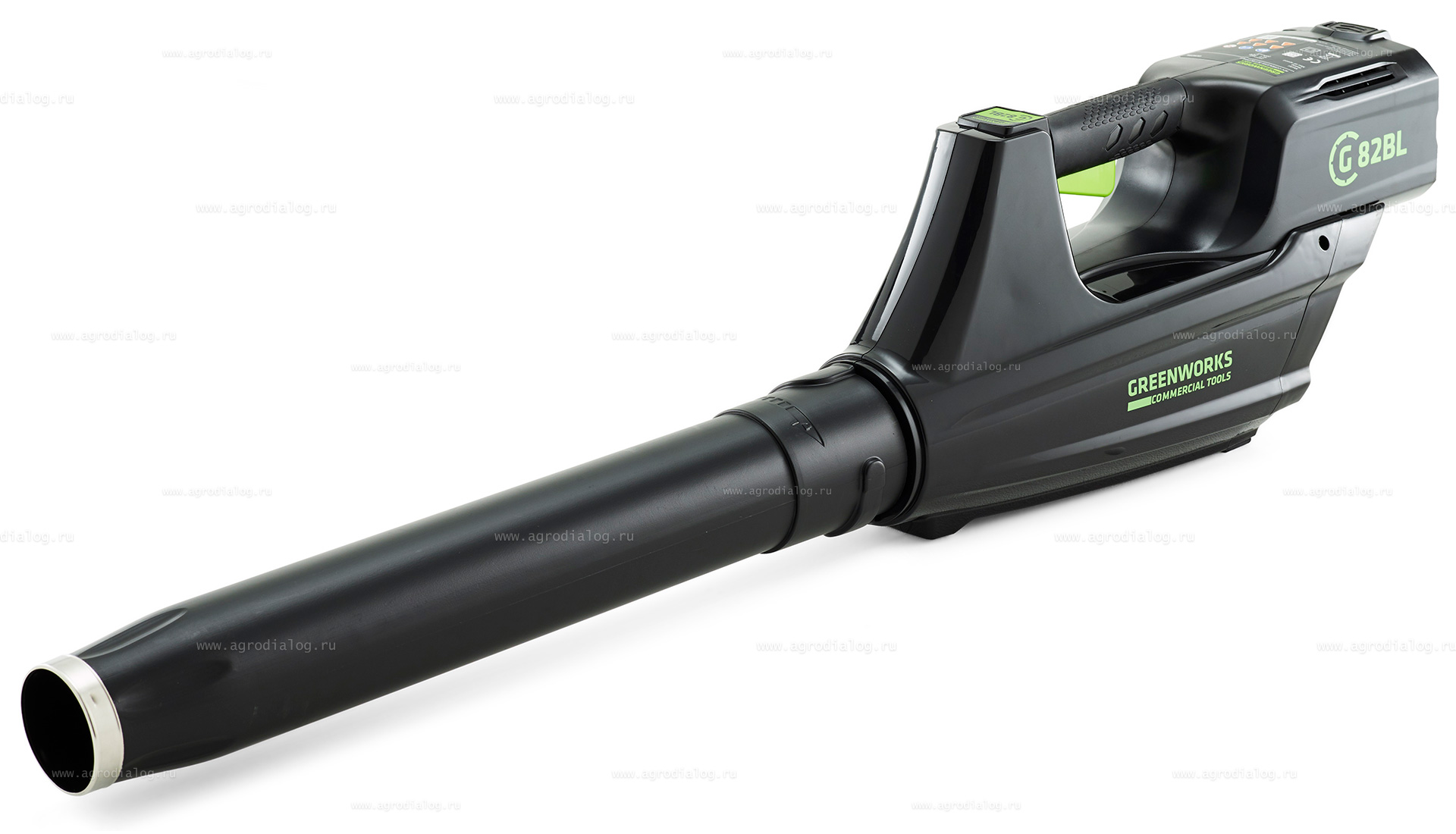 - Садовая воздуходувка Greenworks GD82BLK5 работает от батареи, которая подходит ко всем инструментам аккумуляторной системы Greenworks 82 Commercial. Один аккумулятор и одно зарядное устройство для разных инструментов – это рационально и эффективно.