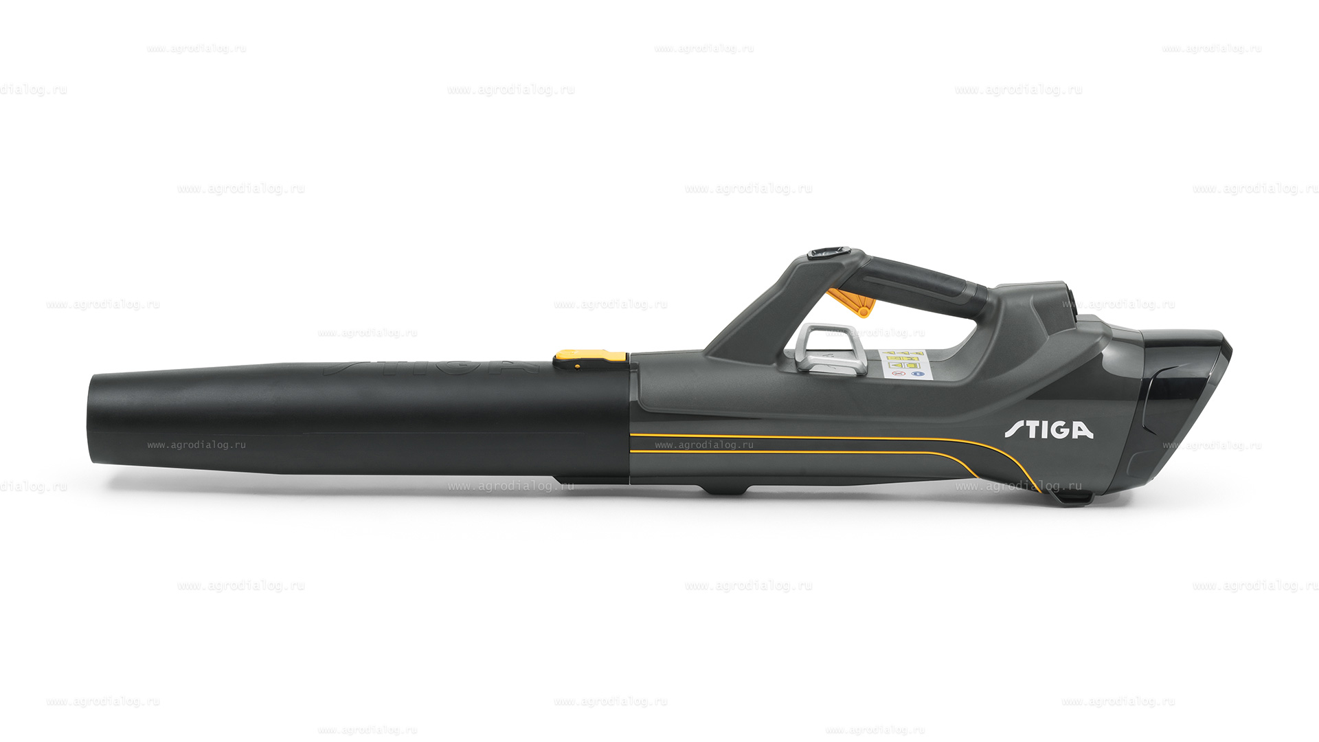 - Садовая воздуходувка Stiga BL 900e имеет плавную регулировку скорости воздушного потока на курке и турбо режим. Турбо режим предназначен для свежего снега, мокрых листьев и другого более тяжелого мусора.