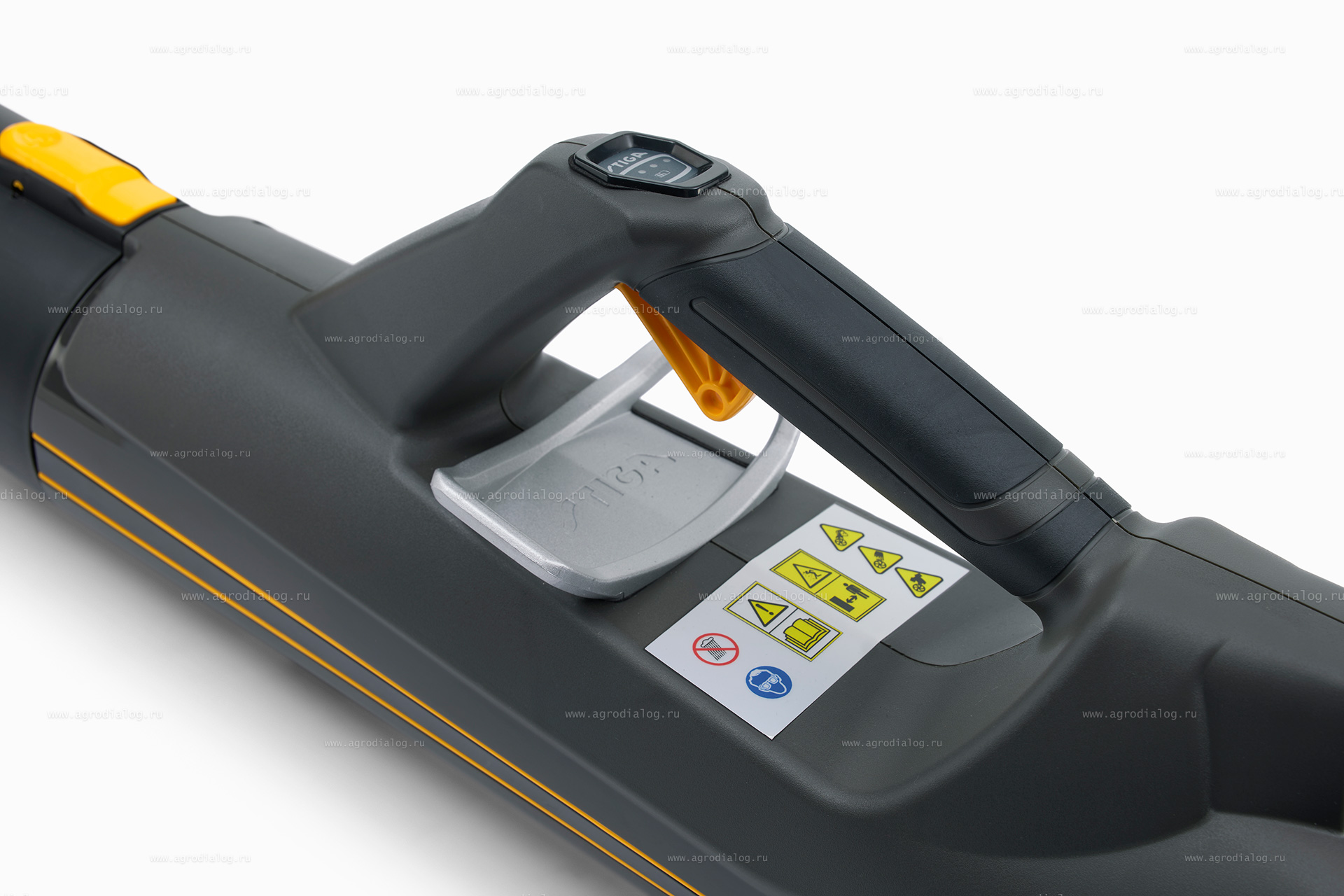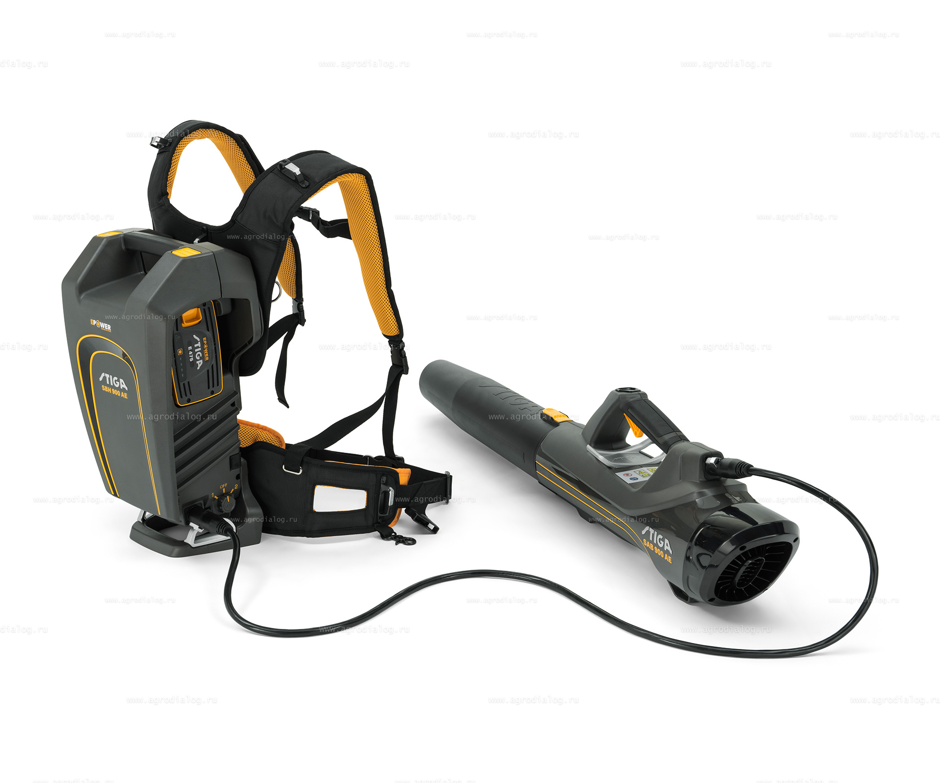 - Особенностью этого устройства является отсутствие гнезда для стандартного аккумулятора. Аккумулятор устанавливается в ранцевую систему Stiga SBH 900 AE и подключается к воздуходувке с помощью коннектора. Таким образом в руках вы держите только сам воздуходув и не нагружаете руку дополнительным весом от аккумулятора.
