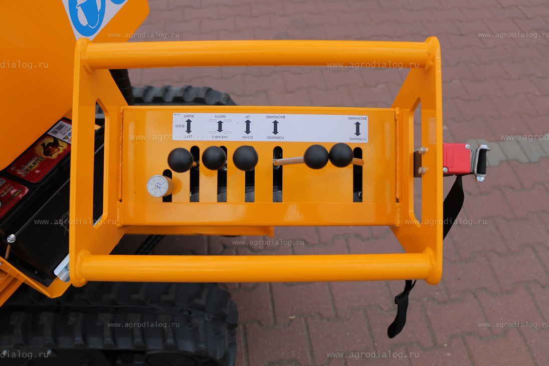 - Гусеничное шасси с регулируемой шириной колеи (67 – 97 сантиметров) гарантирует высокую проходимость машины на пересеченной местности. В отличие от пневматических колес, гусеницы невозможно пробить или повредить острыми предметами.