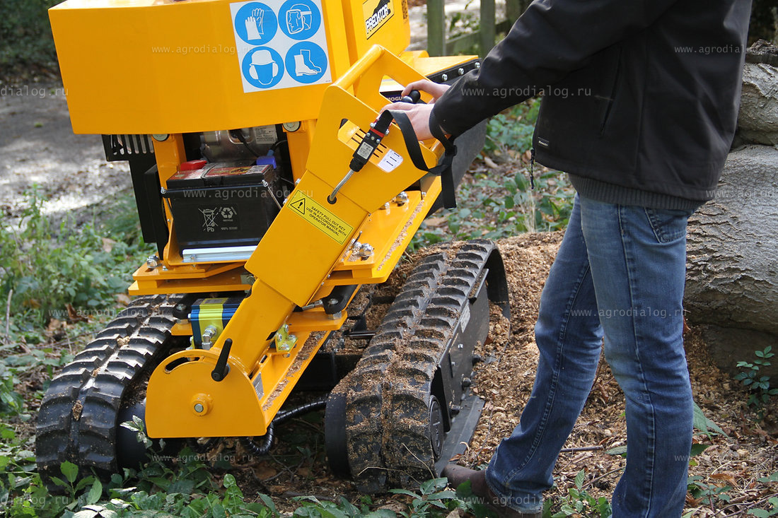 Компактная конструкция измельчителя позволяет удалять пни в ограниченных пространствах, шириной до 70 сантиметров, не нанося вреда рядом стоящим деревьям и газону.