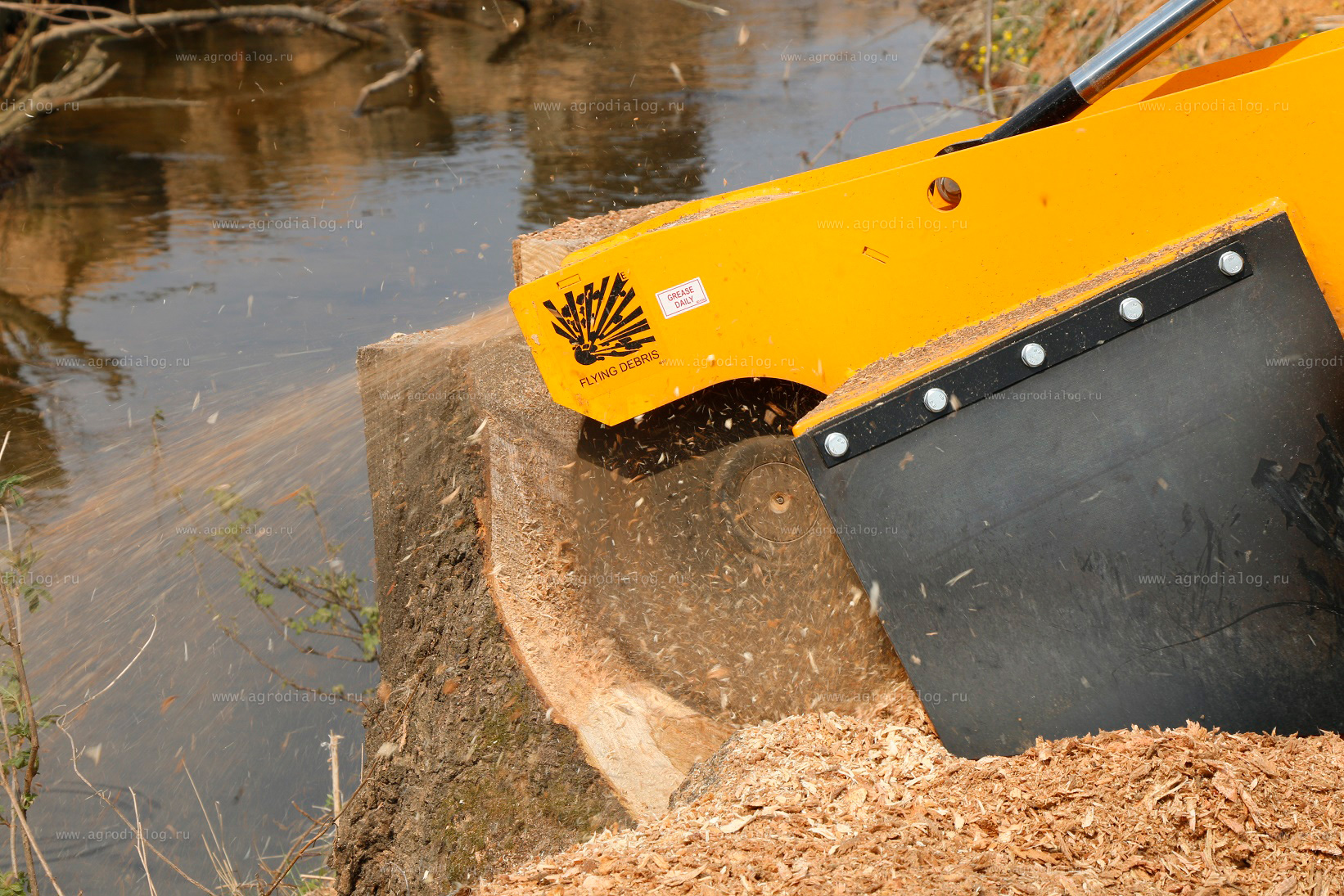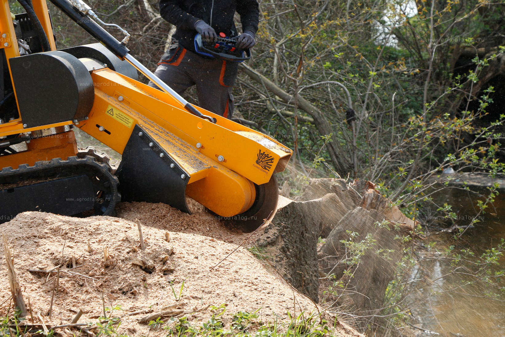 Техника обладает возможностью расщеплять пни, выступающие над поверхностью земли на высоту более 80 сантиметров и до 38 сантиметров ниже уровня почвы.