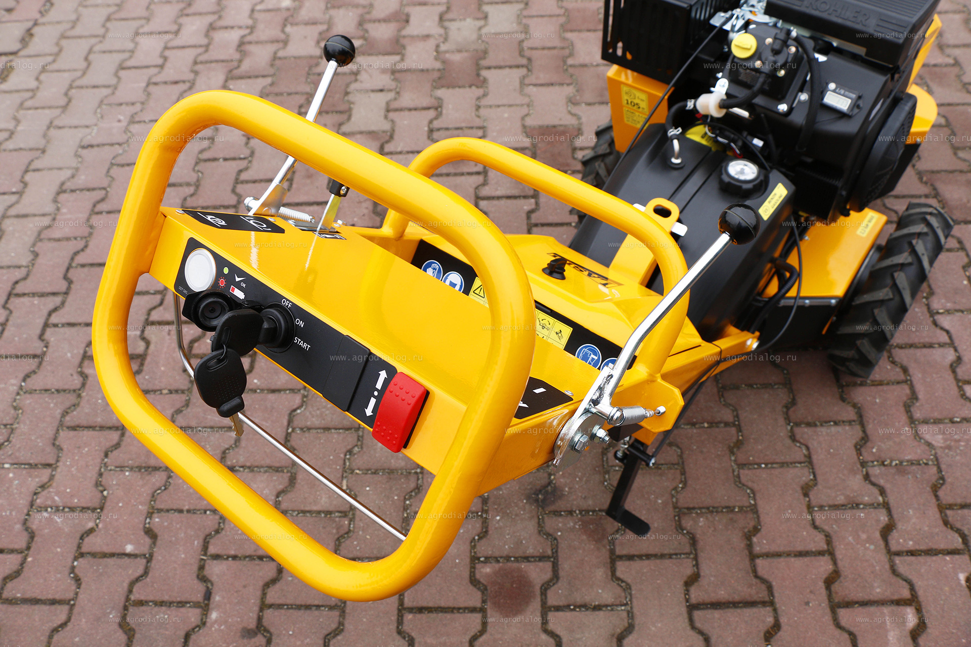 - Двухцилиндровый двигатель Kohler ECH 730 отличается высокими эксплуатационными характеристиками, низким потреблением топлива, надежностью и собран из высококачественных компонентов.