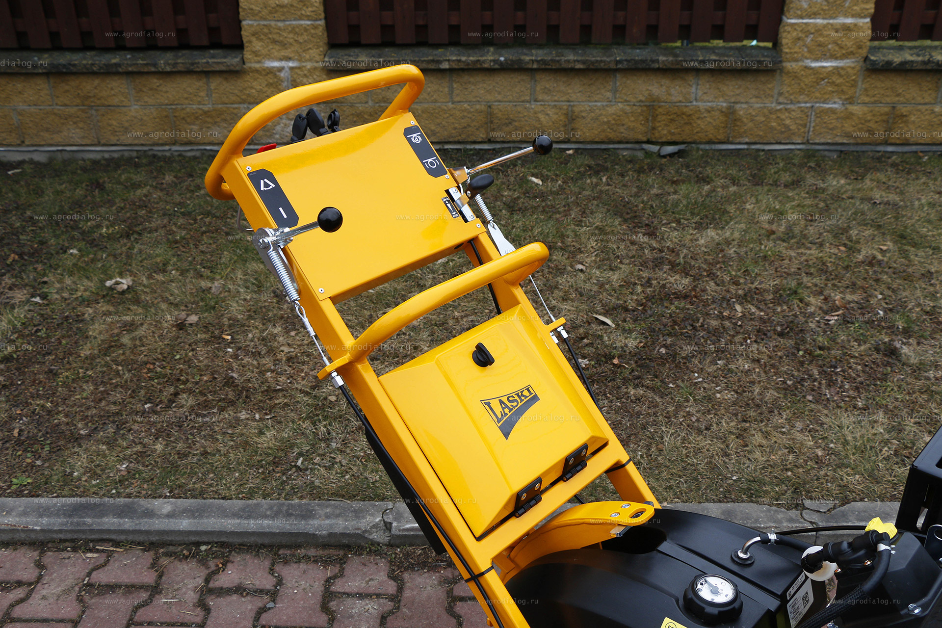 - Широкие пневматические колеса со специальным протектором облегчают проходимость и маневрирование на склонах и неровном грунте.