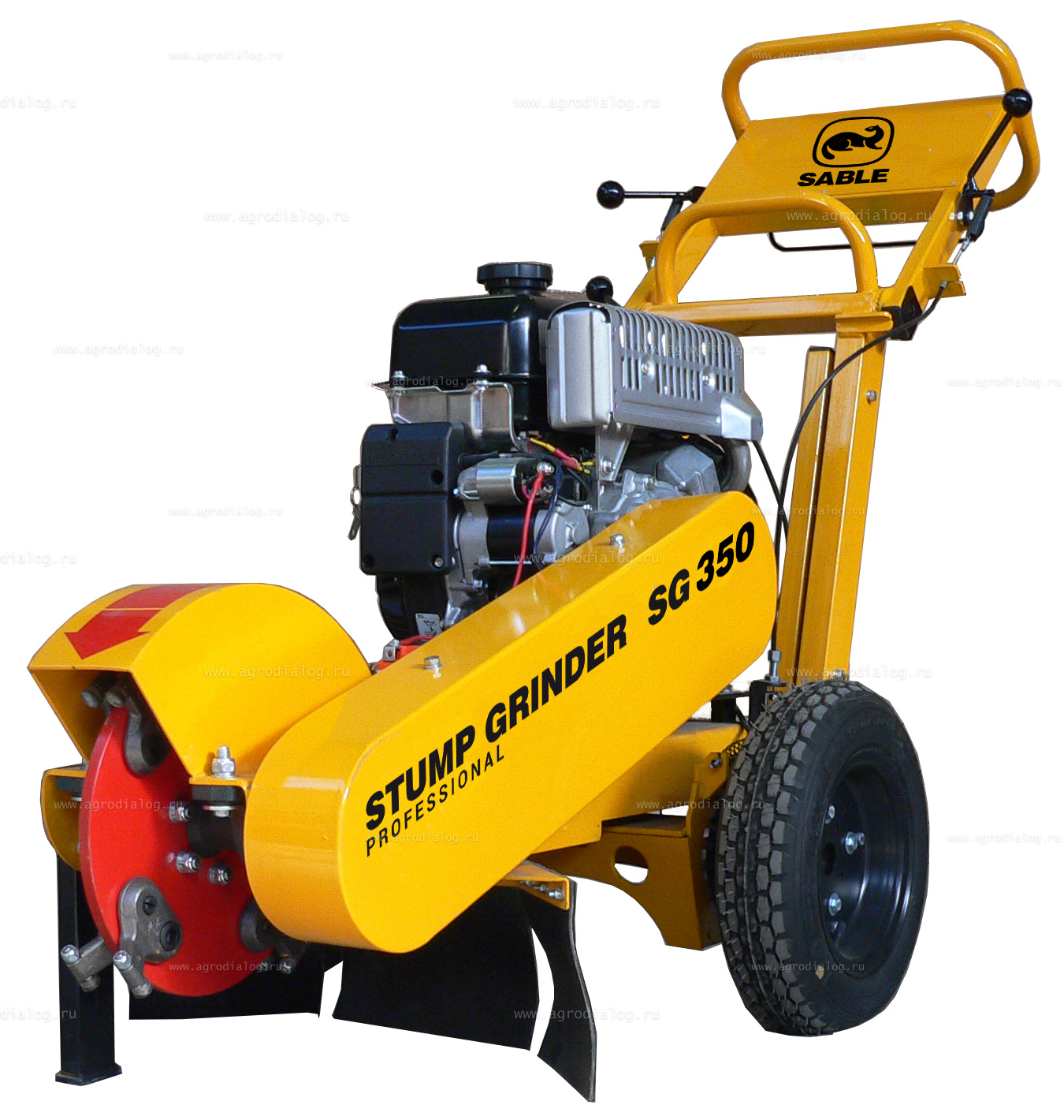 - Если для вас важна надежность узлов и соединений, высокая производительность, простота эксплуатации и обслуживания, безопасность работы, то измельчитель пней Sable SG350L Greenteeth – правильный выбор.