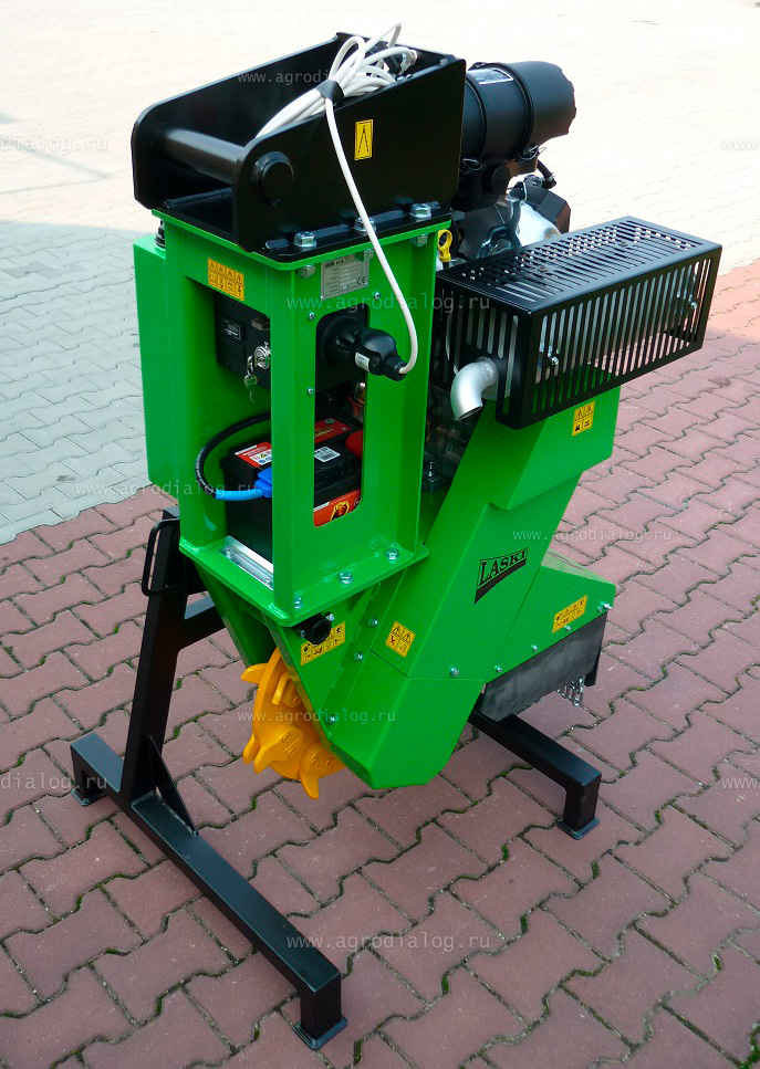 Для коммунальных служб, зачастую, одним из важных вопросов становится - проблема уничтожения пней. Именно для таких целей специалистами был разработан измельчитель пней Laski FZ 500/38. Ограничений по диаметру пня нет. Максимальный наклон двигателя 25 градусов (в любую сторону). Измельчитель пней обладает возможностью размалывать пни, выступающие над поверхностью земли на высоту более 440 мм и до 300 мм ниже уровня почвы. Выпускается в качестве навесной конструкции, которая крепится на гидравлически приводную стрелу строительной машины. Измельчитель пней Laski FZ 500/38 работает режущим диском с зубцами из твердого сплава, таким образом, это - наиболее эффективный способ удаления пней. Поскольку в процессе их утилизации так же решается задача по подготовке и улучшению почвы за счет того, что пень превращается в щепу (или мульчу), которая сразу перемешивается с землей. А мульчирование почвы, в свою очередь, позволяет решить целый ряд проблем: