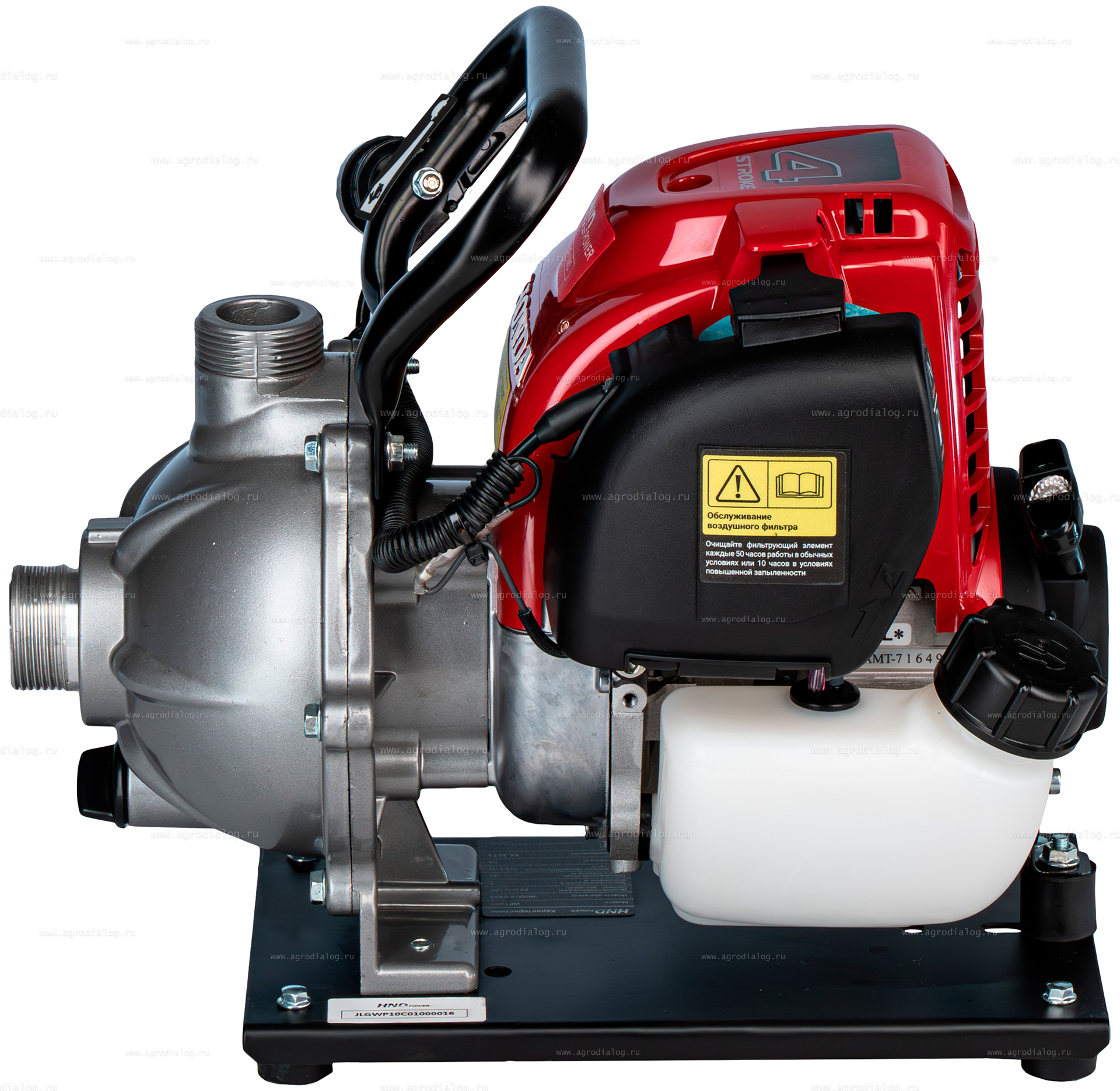 - Для снижения вибрационной нагрузки, бензиновая мотопомпа HND WP 10 XC закреплена на раме с помощью резиновой опоры, значительно снижающей интенсивность вибраций.