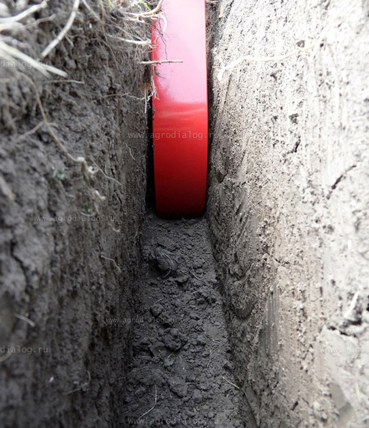 - Режущий элемент траншеекопателя опускается на глубину до 45 см.