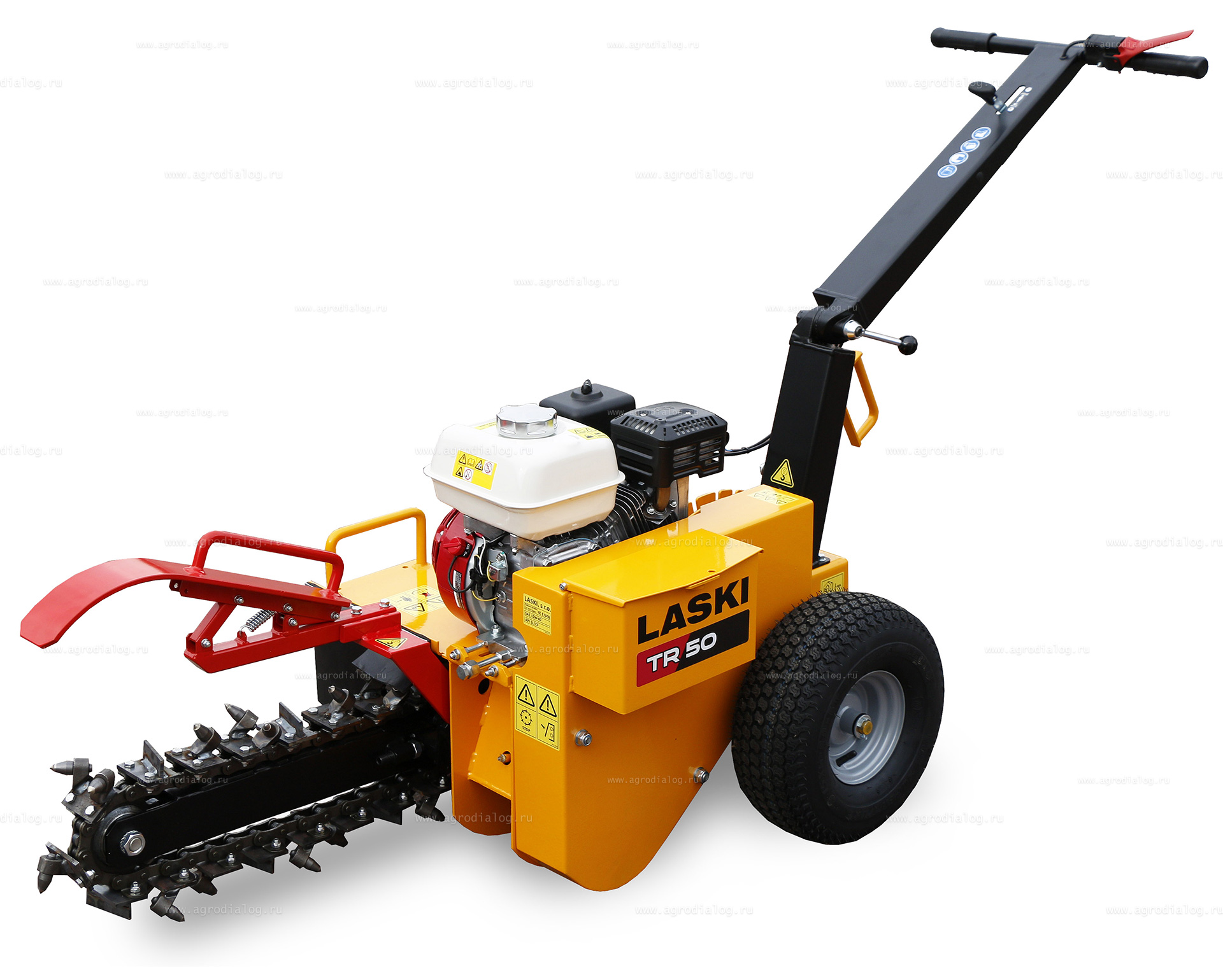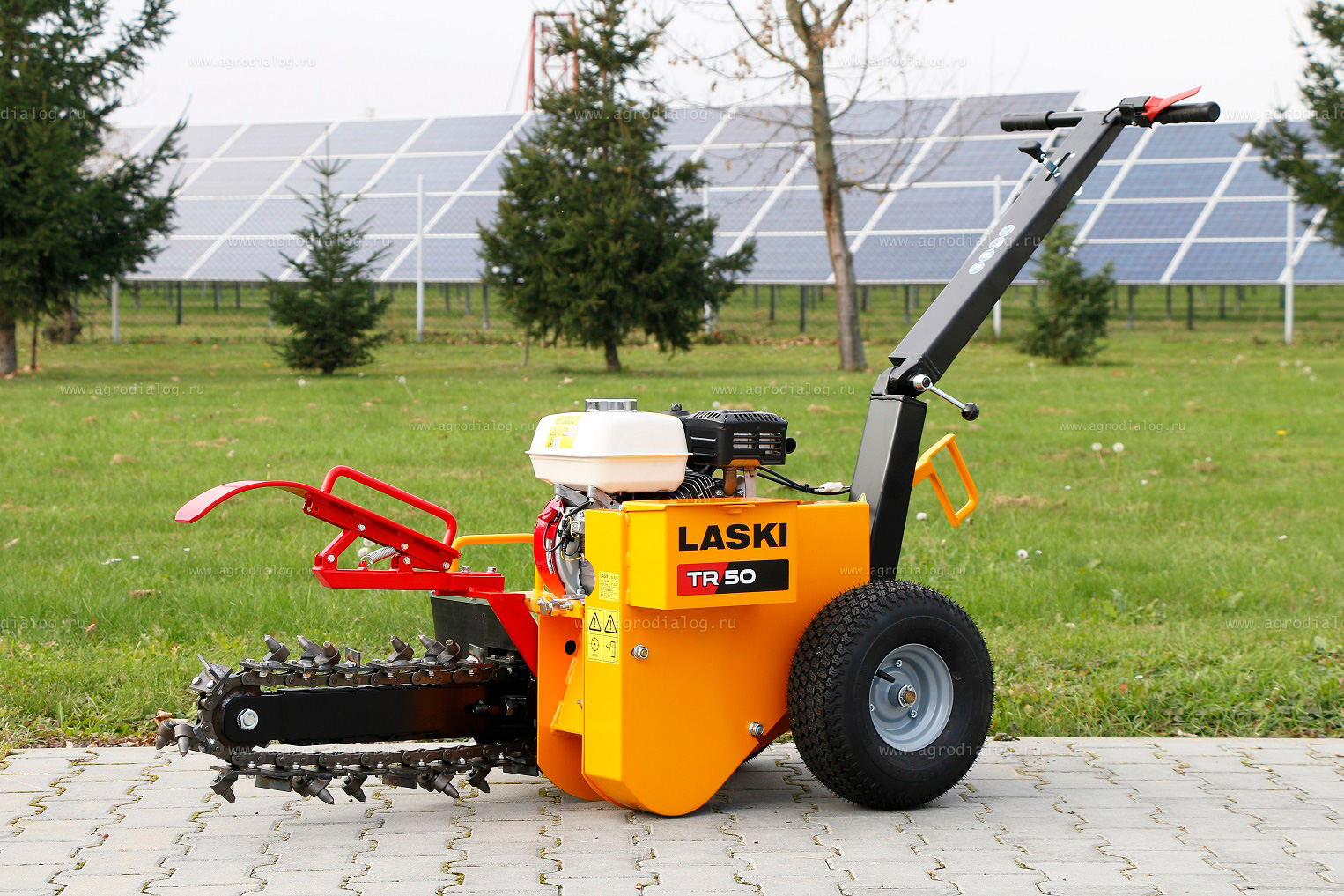 Траншеекопатель Laski TR 50/6.5/50 - оптимальная установка для вырывания канав под кабели и линии проводов, прокладываемых в районе садово-парковой зоны. Отлично формирует узкие траншеи под инженерные коммуникации, кабель электроснабжения, трубопроводы, каналы для установки бордюров.