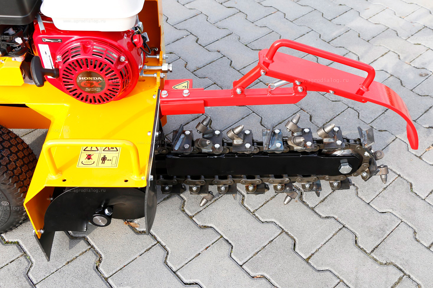 - Режущий элемент траншеекопателя опускается на глубину до 45 см.