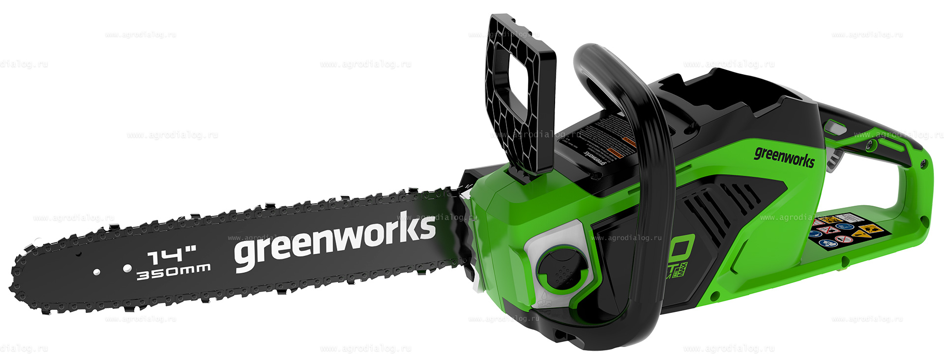 - Аккумуляторная пила Greenworks GD40CS15K5 имеет чрезвычайно простые органы управления. Это означает, что вы можете справиться с любой задачей комфортно и уверенно, и для этого вам потребуется всего одно нажатие кнопки.
